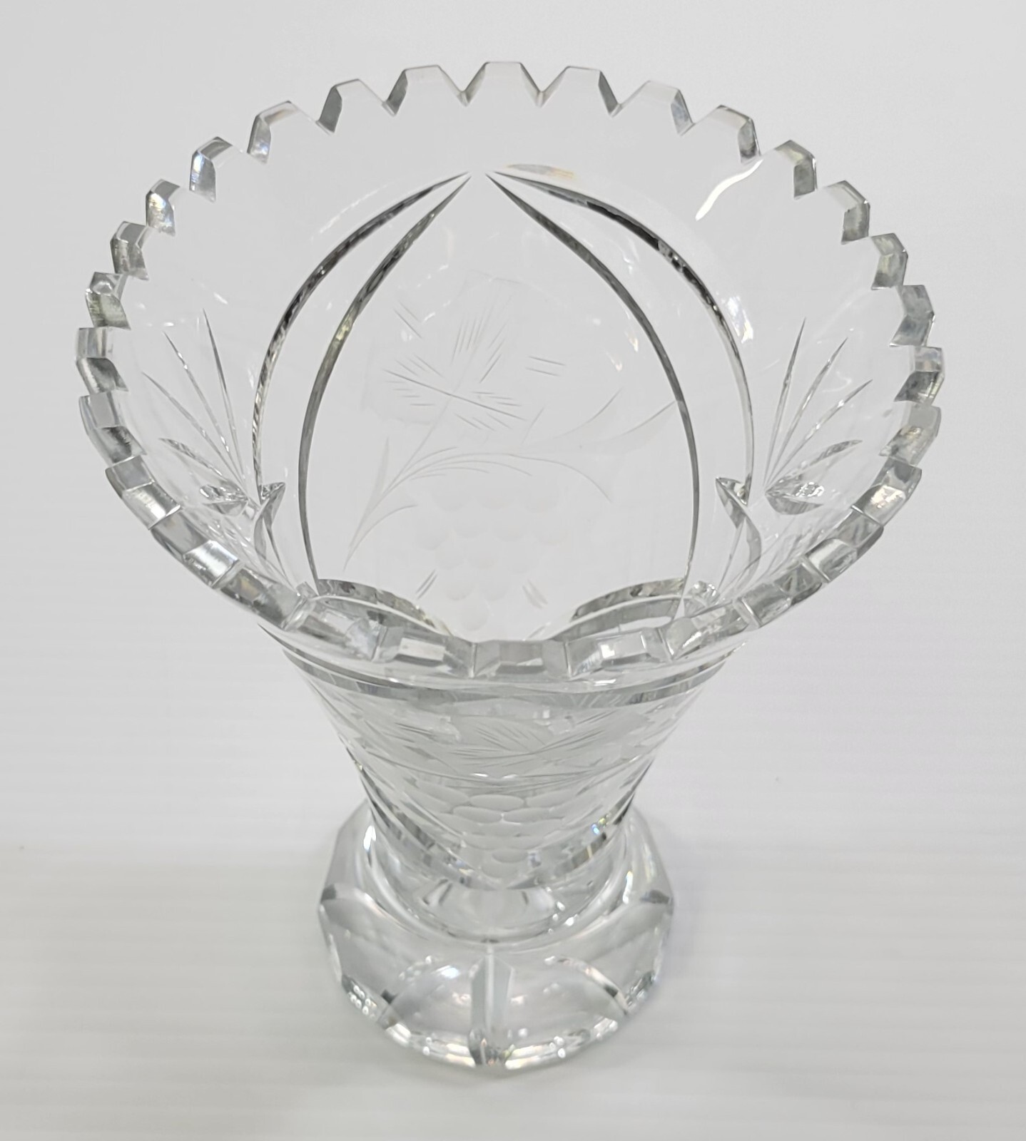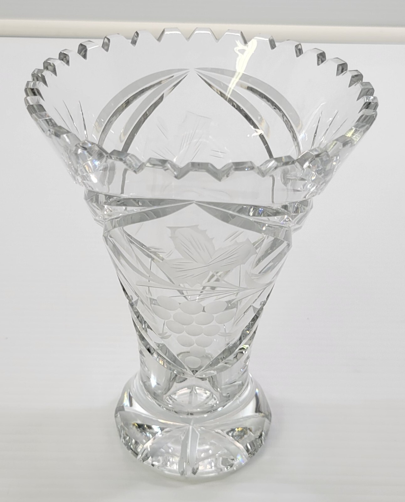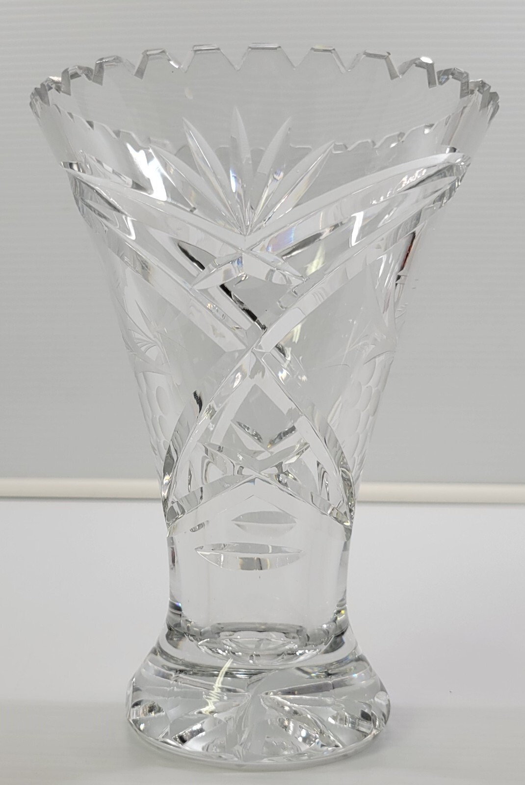 N) Vintage Lausitzer Glas Lead Crystal Etched Hand Cut Glass Vase Germany
