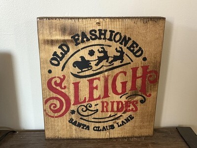 Celebrate the holiday season with this charming "Old Fashioned Sleigh Rides" Christmas sign by Savvy Creations.