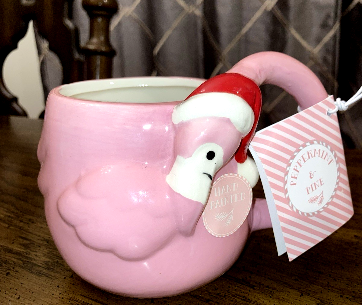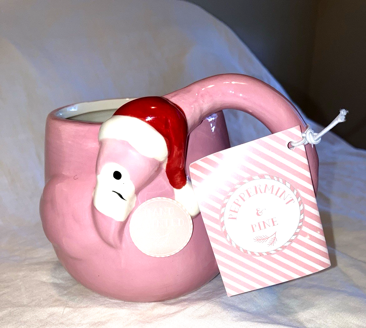 Coffee or Cocoa Mug Pink Flamingo Santa Claus Coming to Town CHRISTMAS