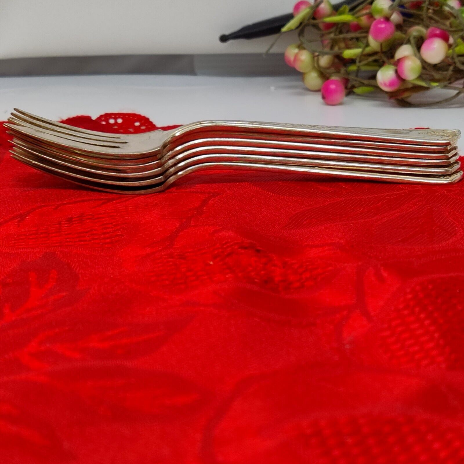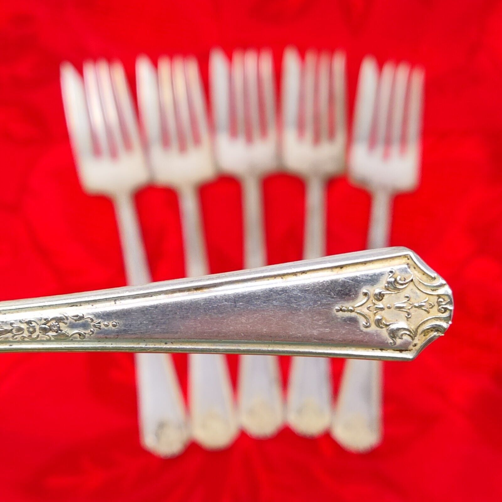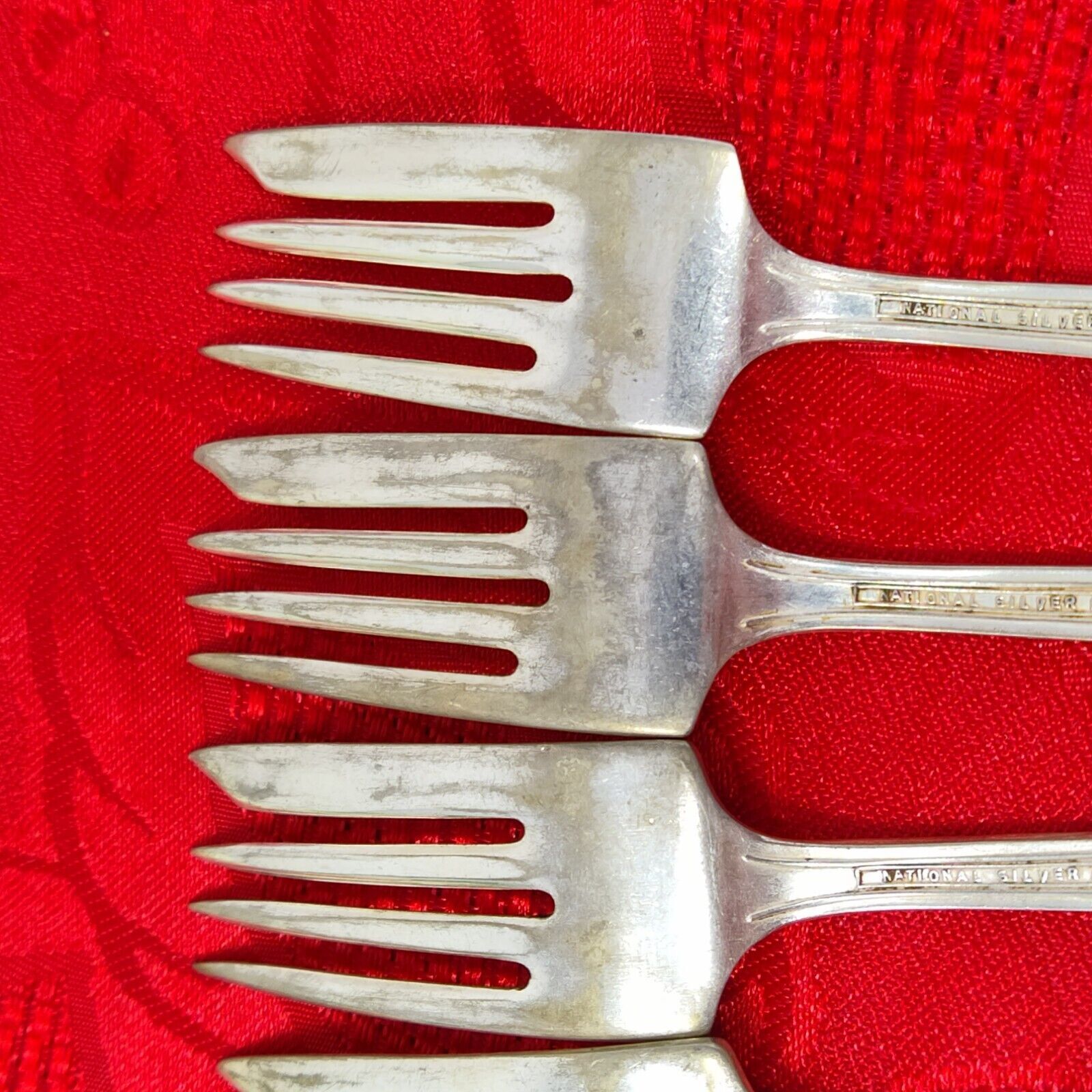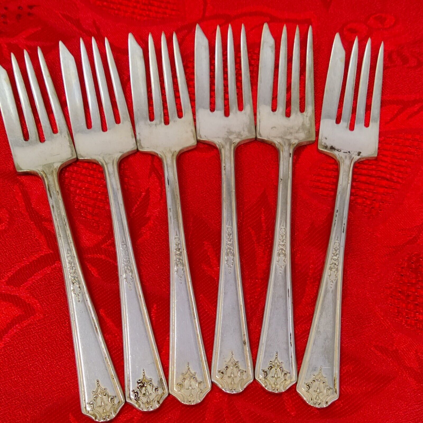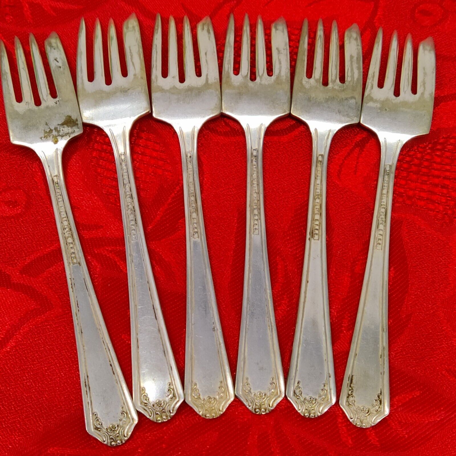 6X SF National Silver Co Gramercy Salad Forks 6" Silver Plated 1930