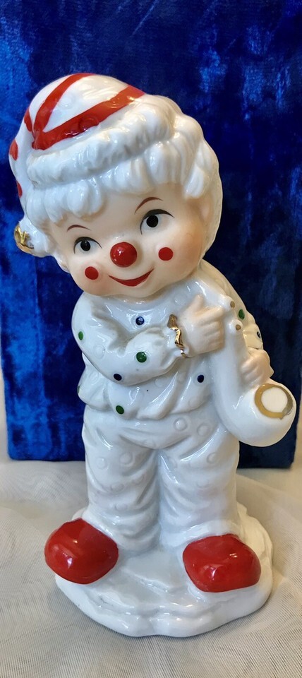 Very cute Vintage Clown Figurine Playing Musical Instrument Saxophone Red Nose Holidays.