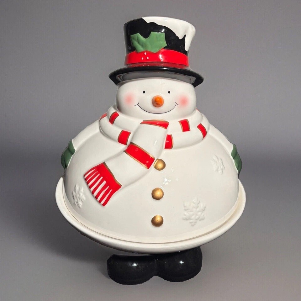 Large Cool Snowman Holiday Cookie/Cake Tray With Lid - 2 Piece