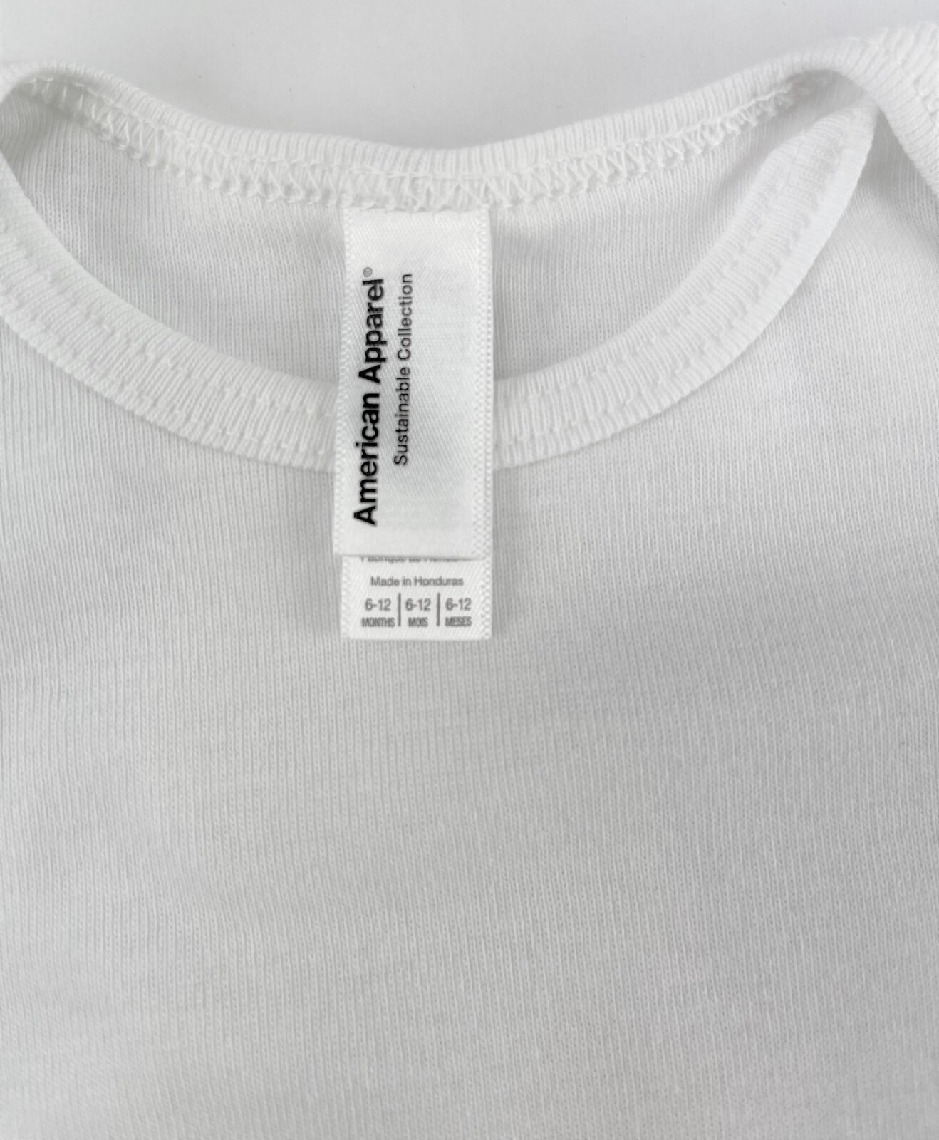 American Apparel made with all the details baby needs. Strong snaps to keep up with wear, wash, repeat. Overlapping shoulders to make wiggly changes easier. And 100% organic cotton for breathable all-day comfort and softness on baby's skin. Layer 'em up, or keep it simple, either way the classic white baby onesie is a must have for baby!