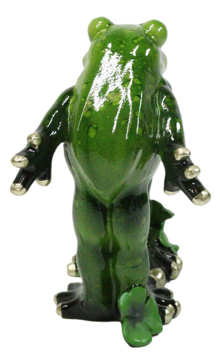 True Love's Kiss Green Frog Couple Kissing By Pond Lily Pads Decorative Figurine
