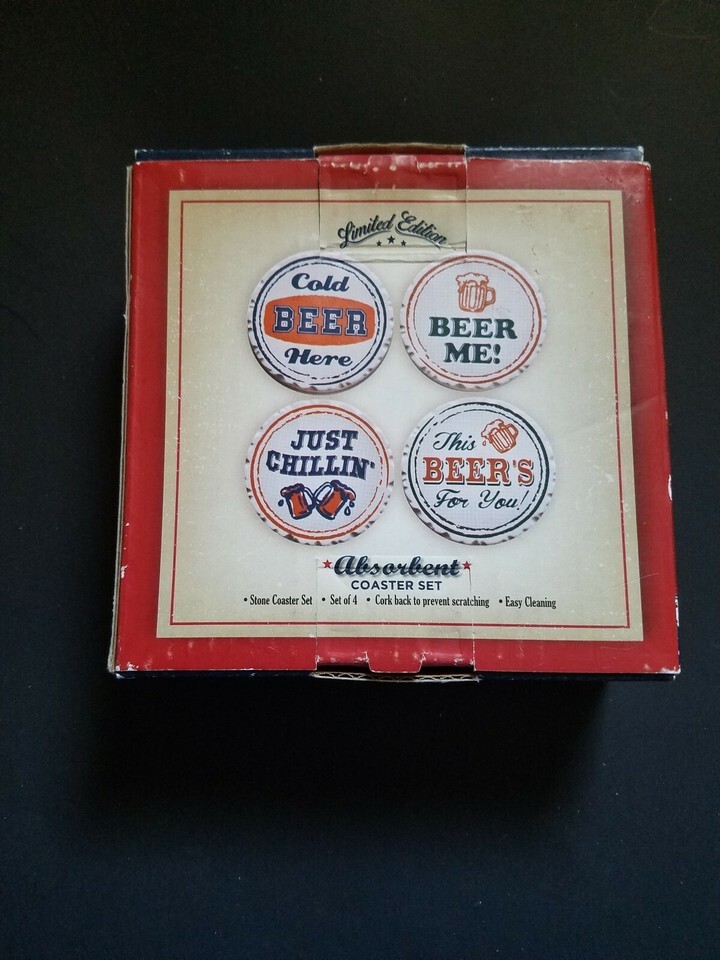 Limited Edition Absorbent Coaster Set Cold Beer Here Just Chillin NEW