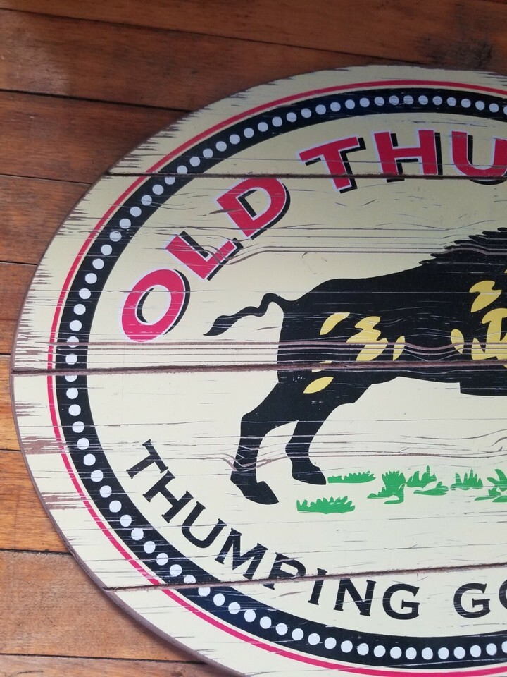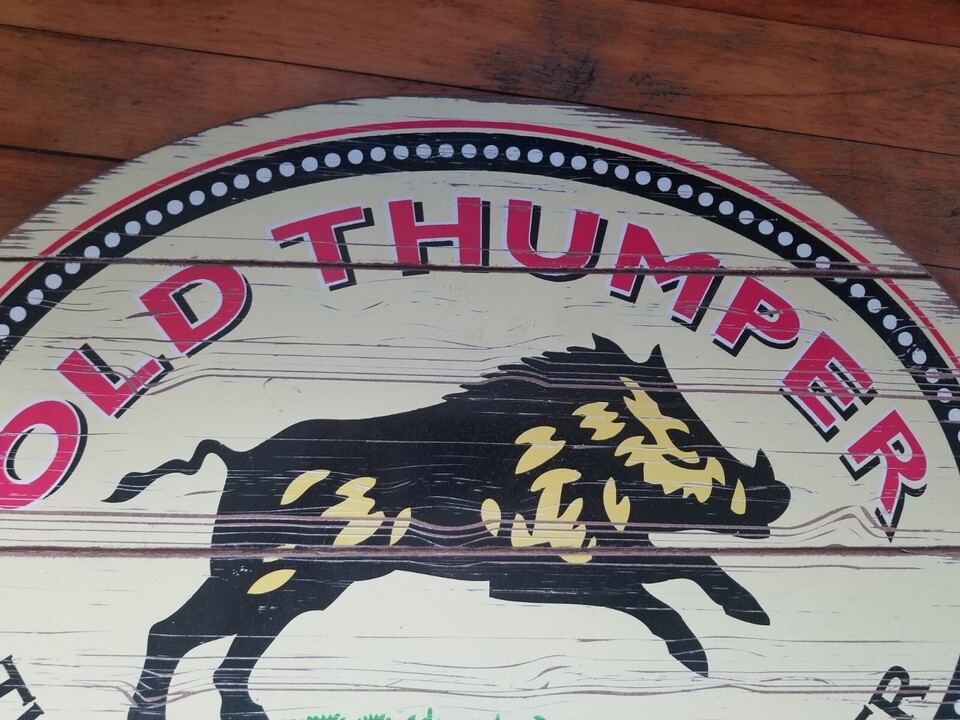 Old Thumper "Thumping Good Beer" Beer Sign Wooden Boar Man Cave 24 X 18