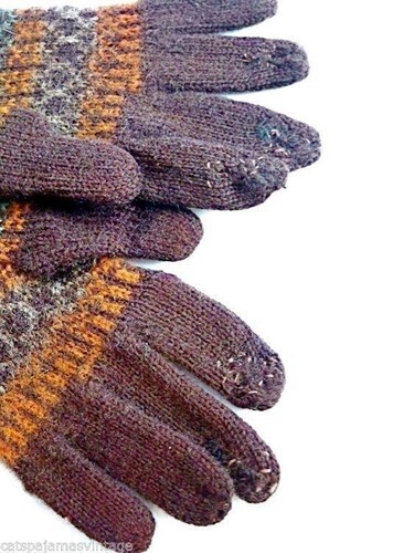 Vintage Hand Knitted Patterned Gloves 1920s-30s Womens Brown Blue Orange