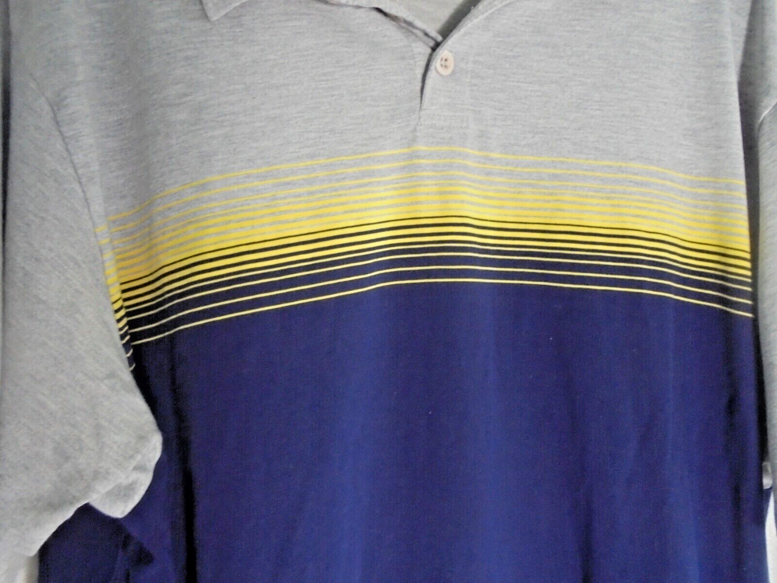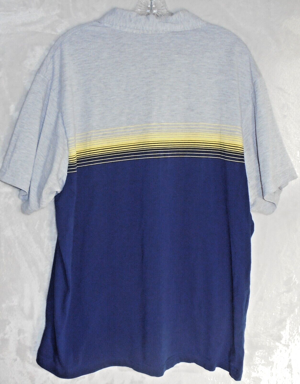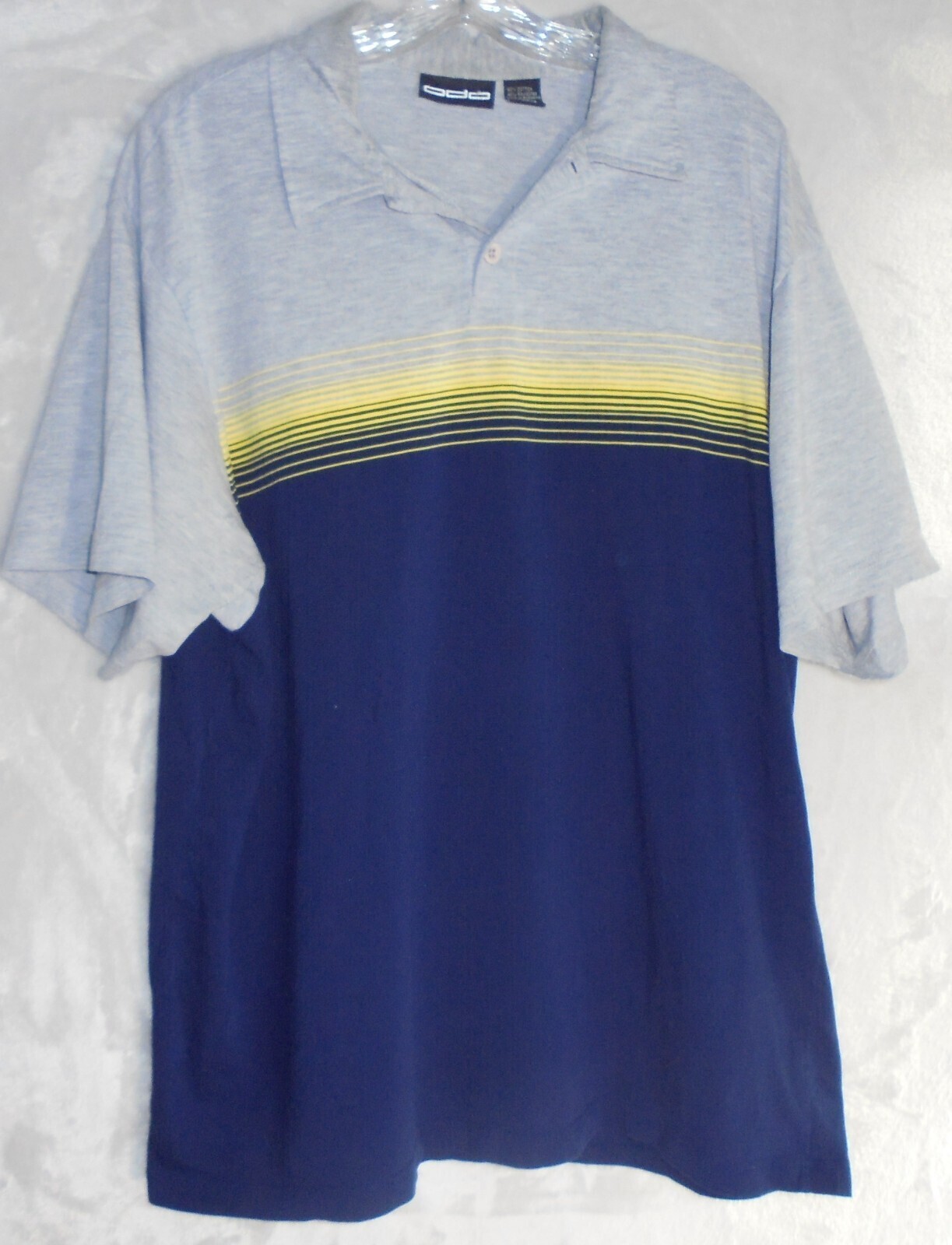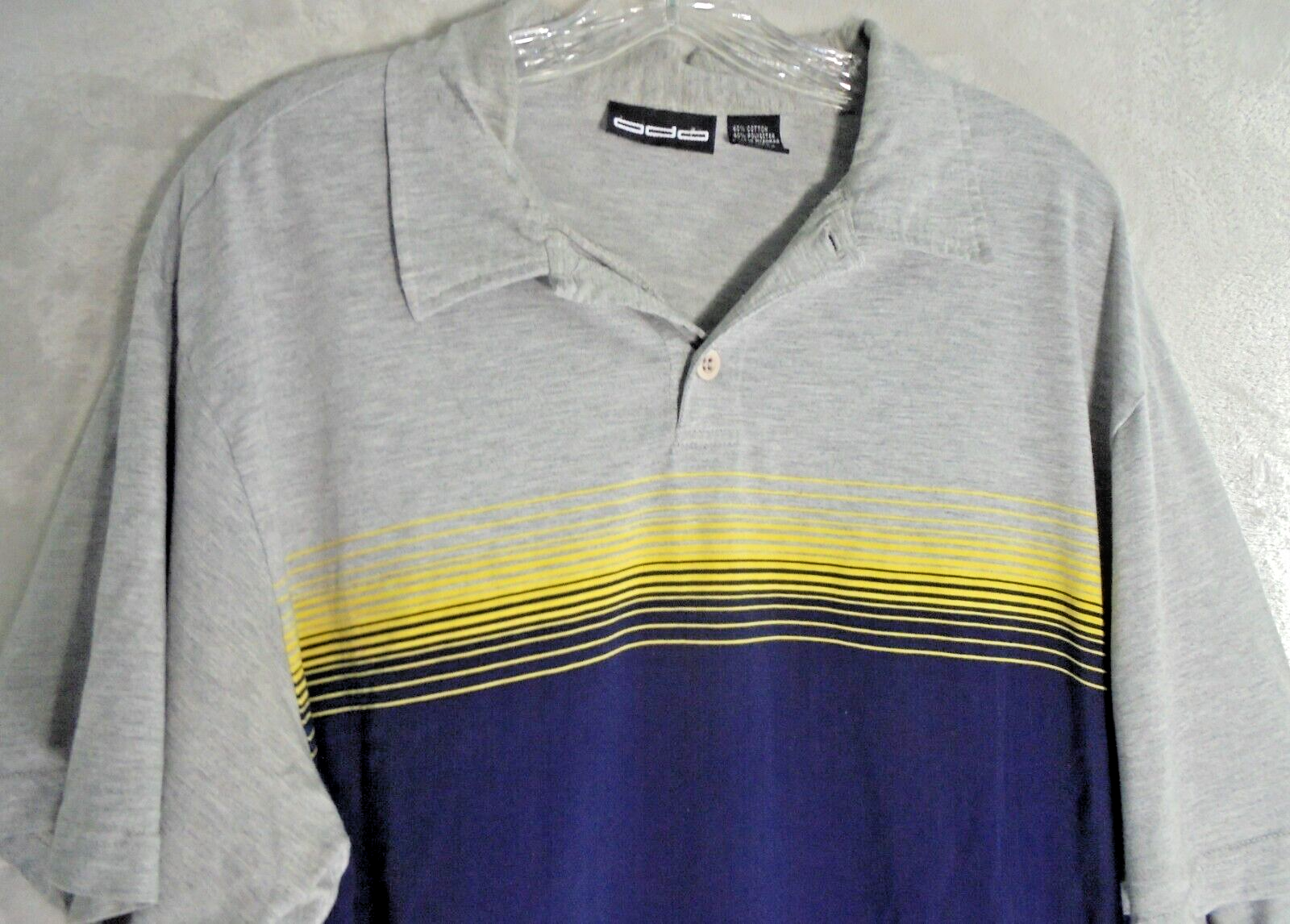 Vintage 90s ODO Mens XL Polo Shirt Solid Gray Yellow Blue Striped Collar Knit