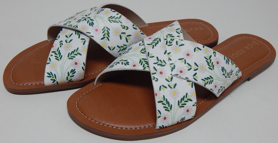 Jack Rogers Sloane Size US 7 M Women's Leather Cross Band Sandals Slotted Daisy