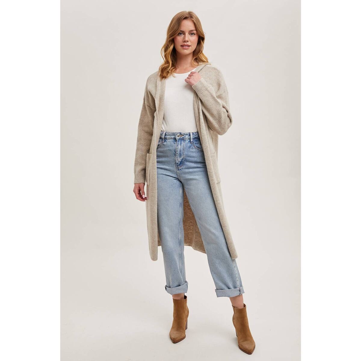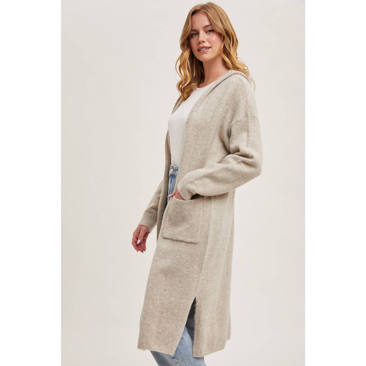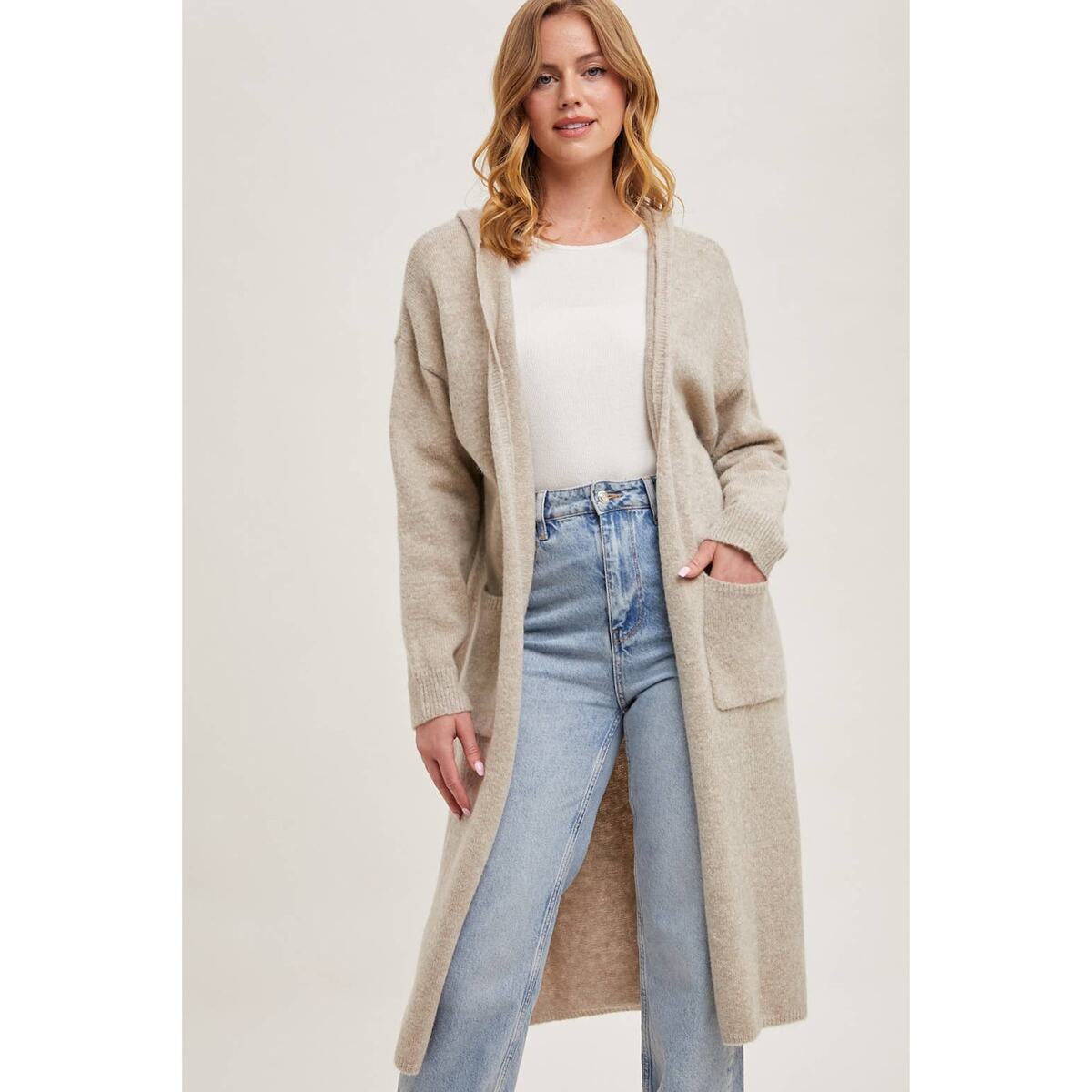 Longline Hoodie Drape Open Front Cardigan Coatigan Oatmeal