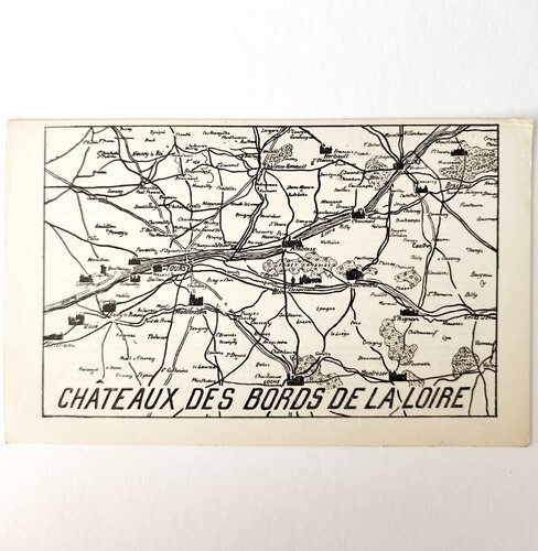 Chateaux Des Bords De LA Loire Mini Map Antique c1920s Info Page PCBG7C