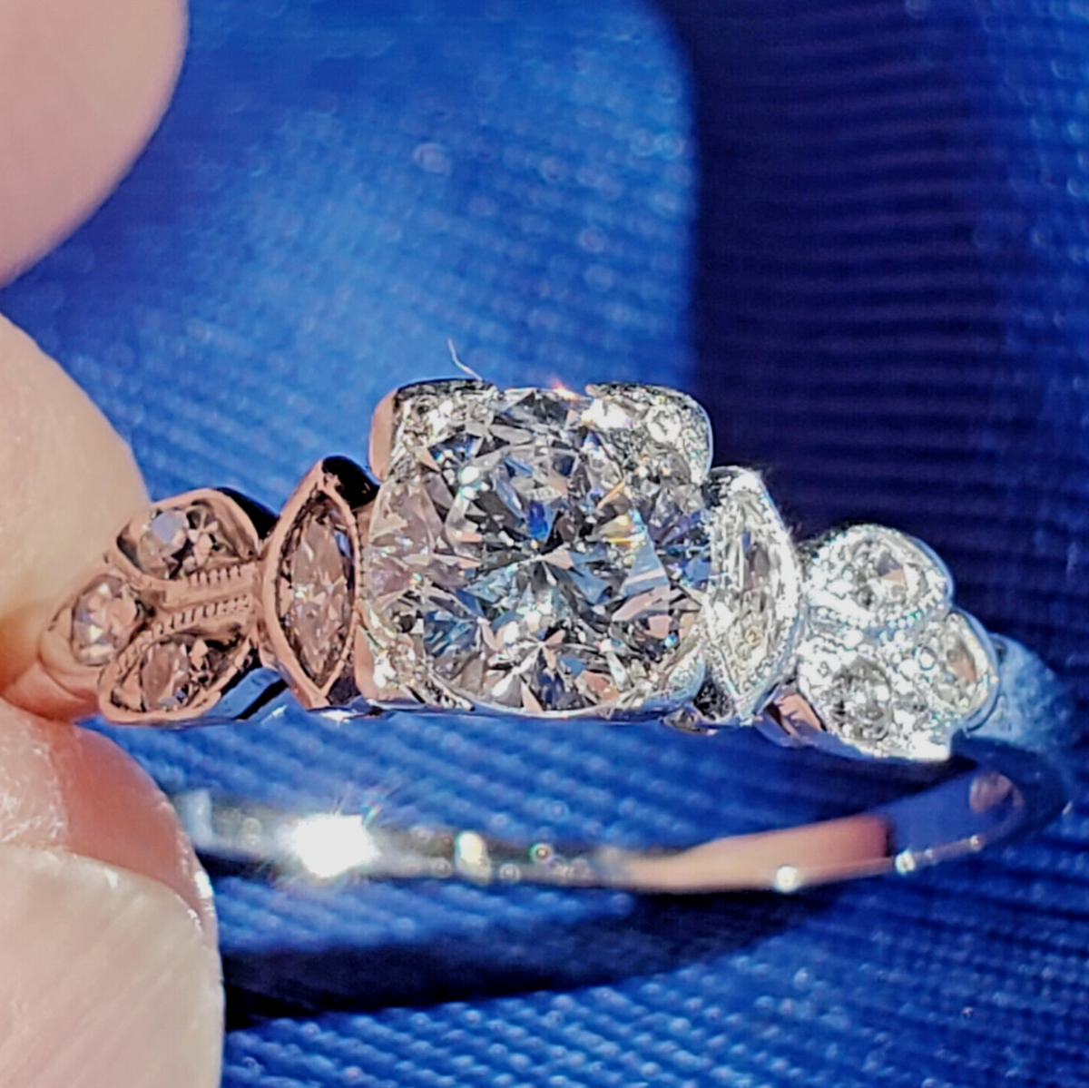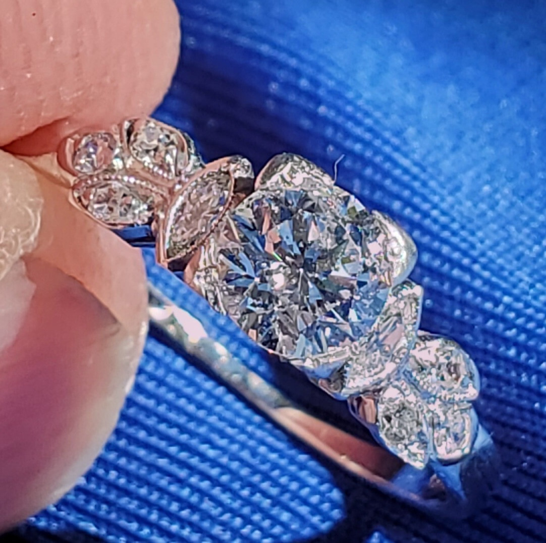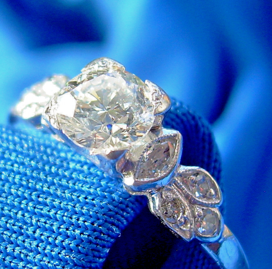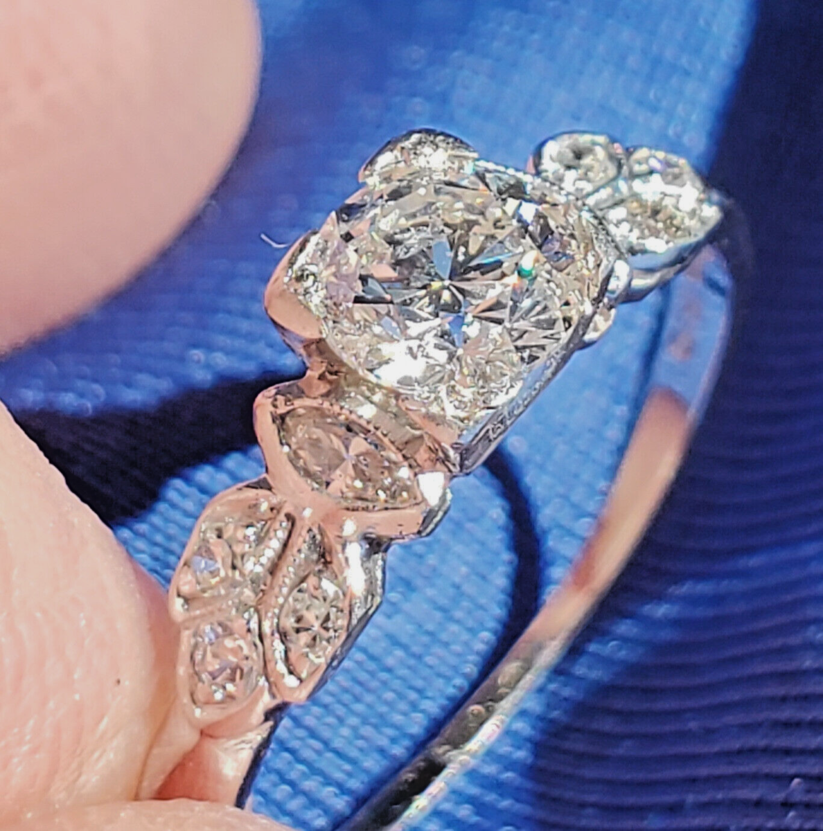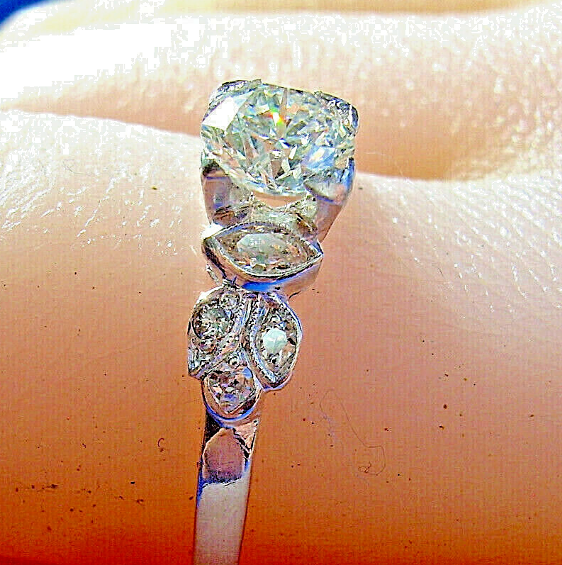 Earth mined Diamond Deco Engagement Ring 0.72ct Vintage Solid Platinum Solitaire