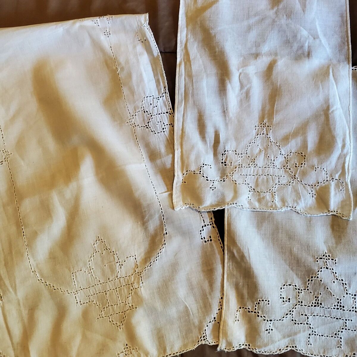 Vintage Embroidery Cutouts Table Runner 19x12.5" & 45x15" SET OF 3
