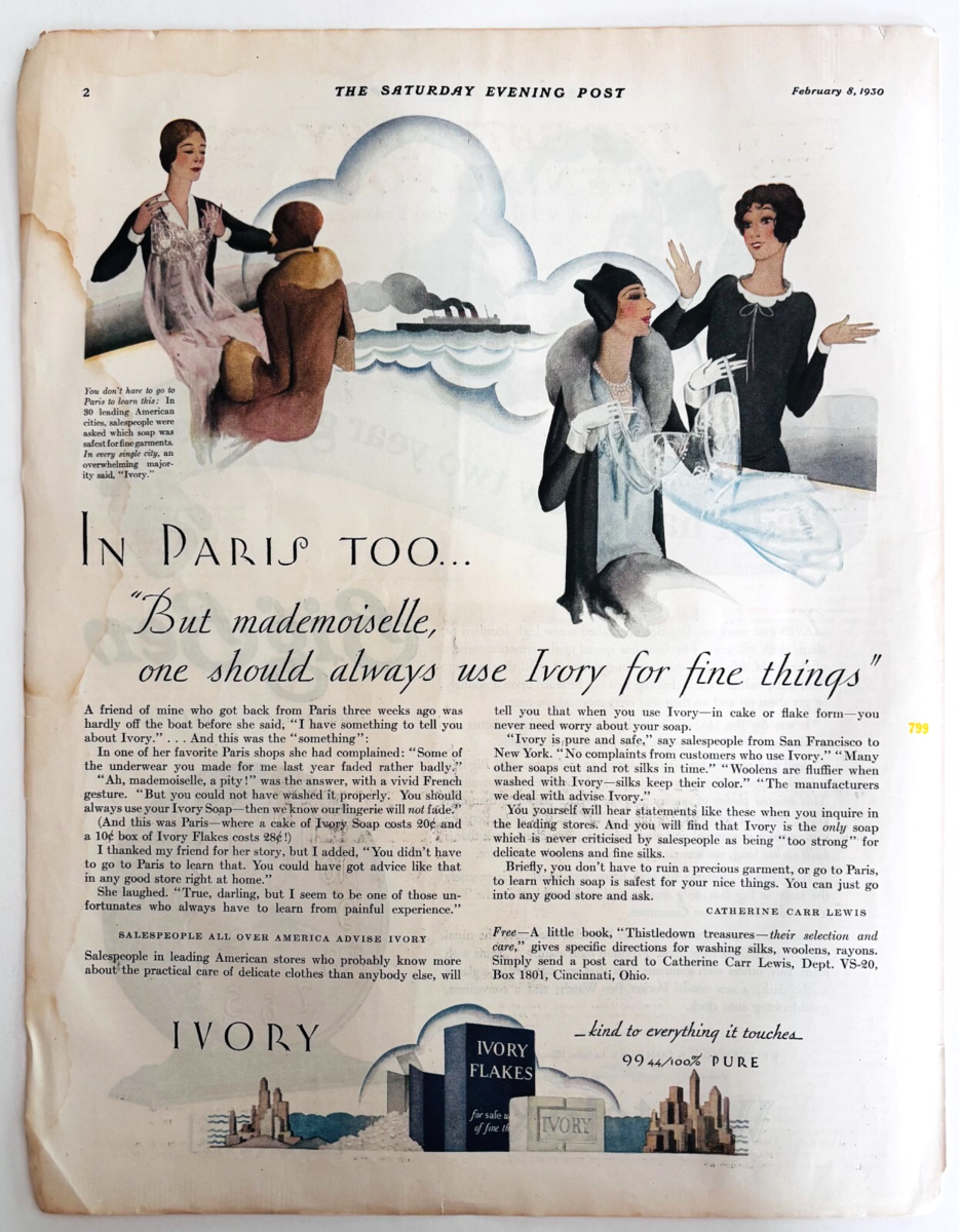 1930 Ivory Soap Flakes Advertisement Laundry Detergent Paris Antique DWWW10