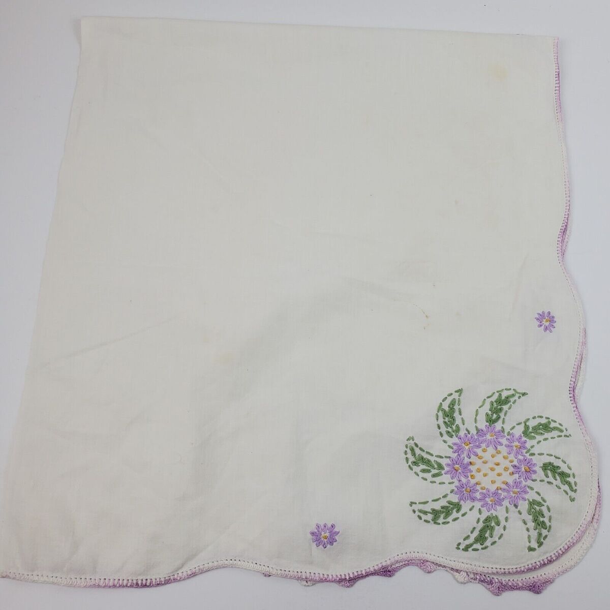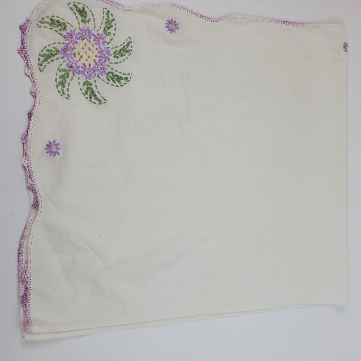 Vintage Embroidery Crochet Table Runner Lavender Pinwheel 38x17" Handmade