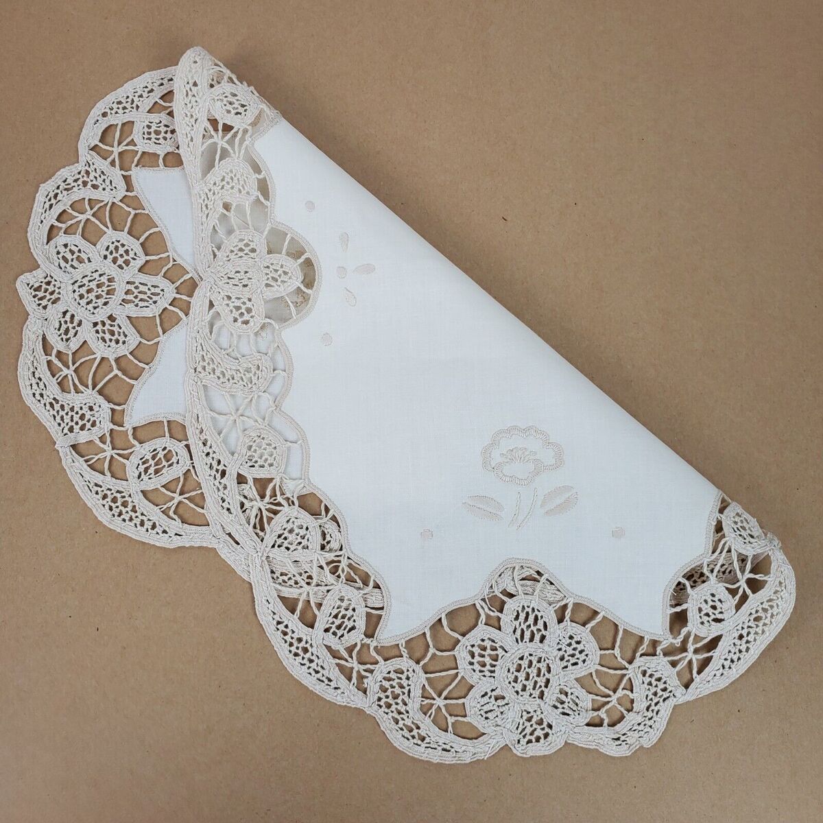 Vintage Embroidery Table Runner Dresser Doily Beige 16x11 Inch Oval