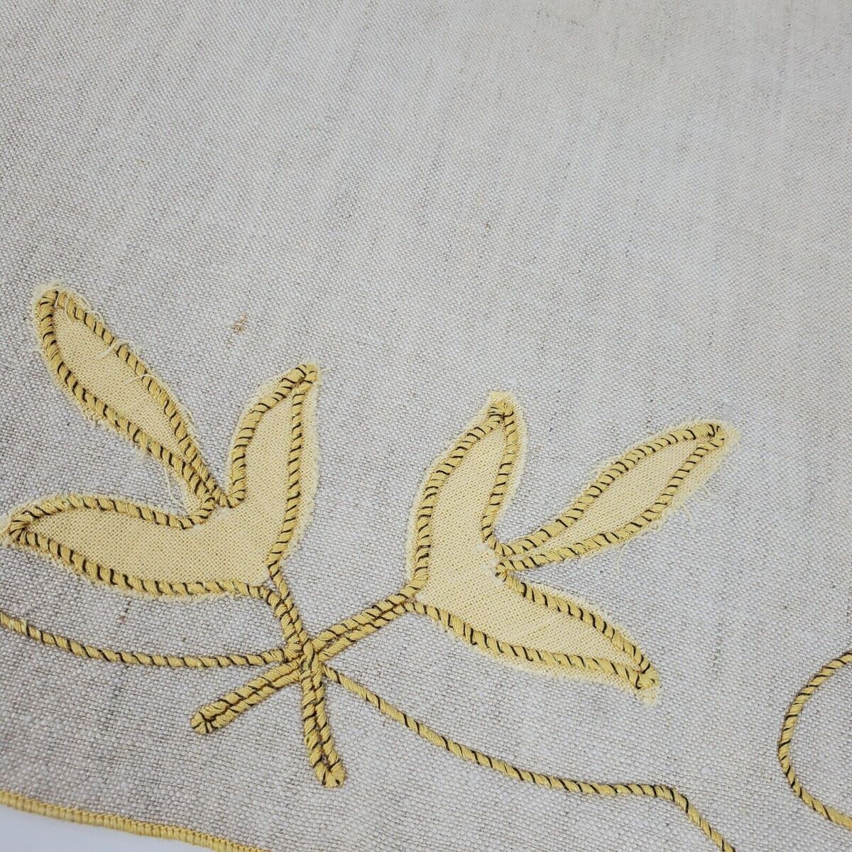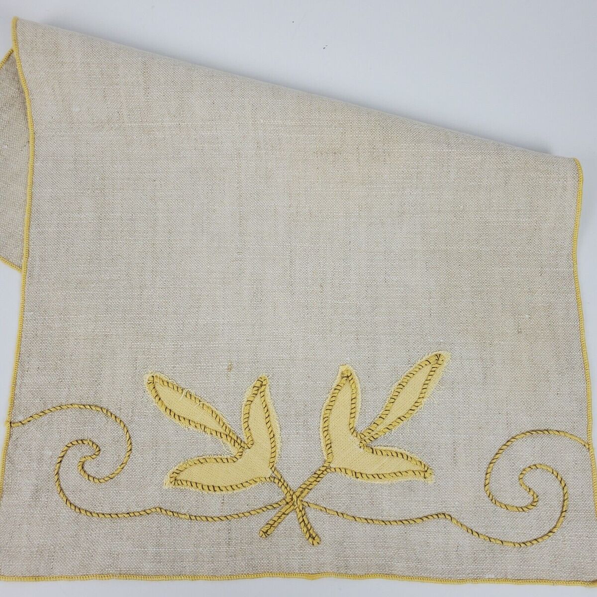 Vintage Applique Table Runner 16x11 Inch Beige Yellow