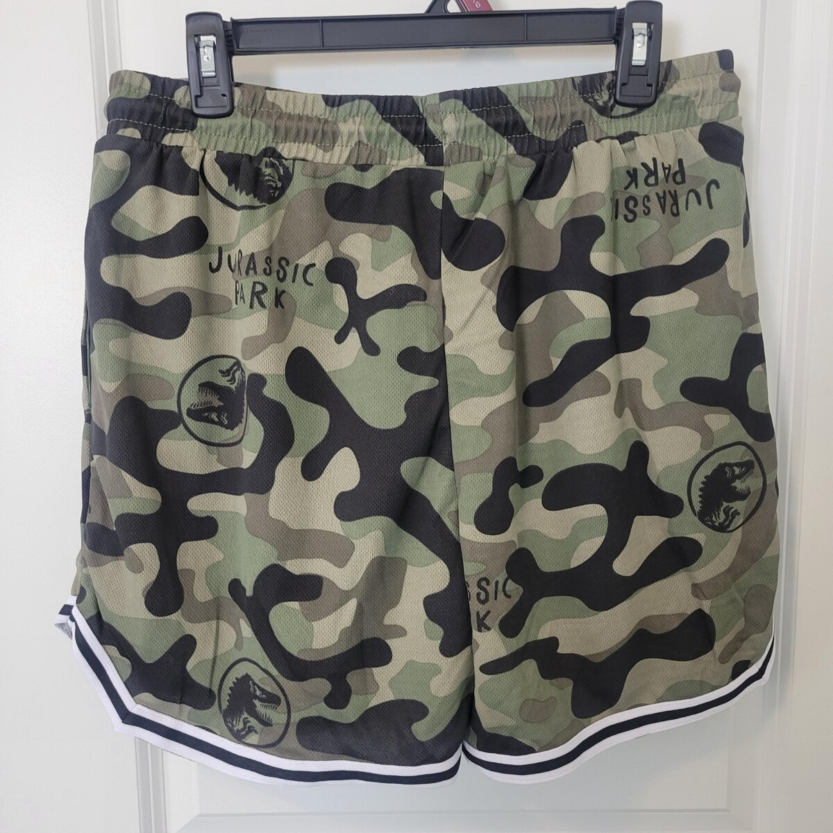 Jurassic Park Men's Graphic Lined Mesh Shorts Size Medium Green Camo NWOT