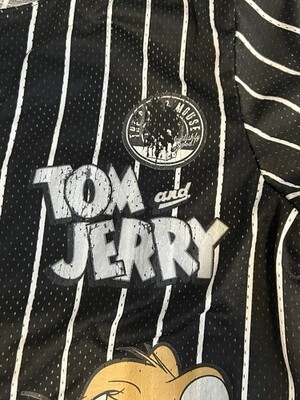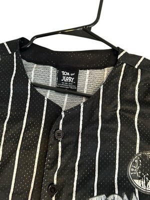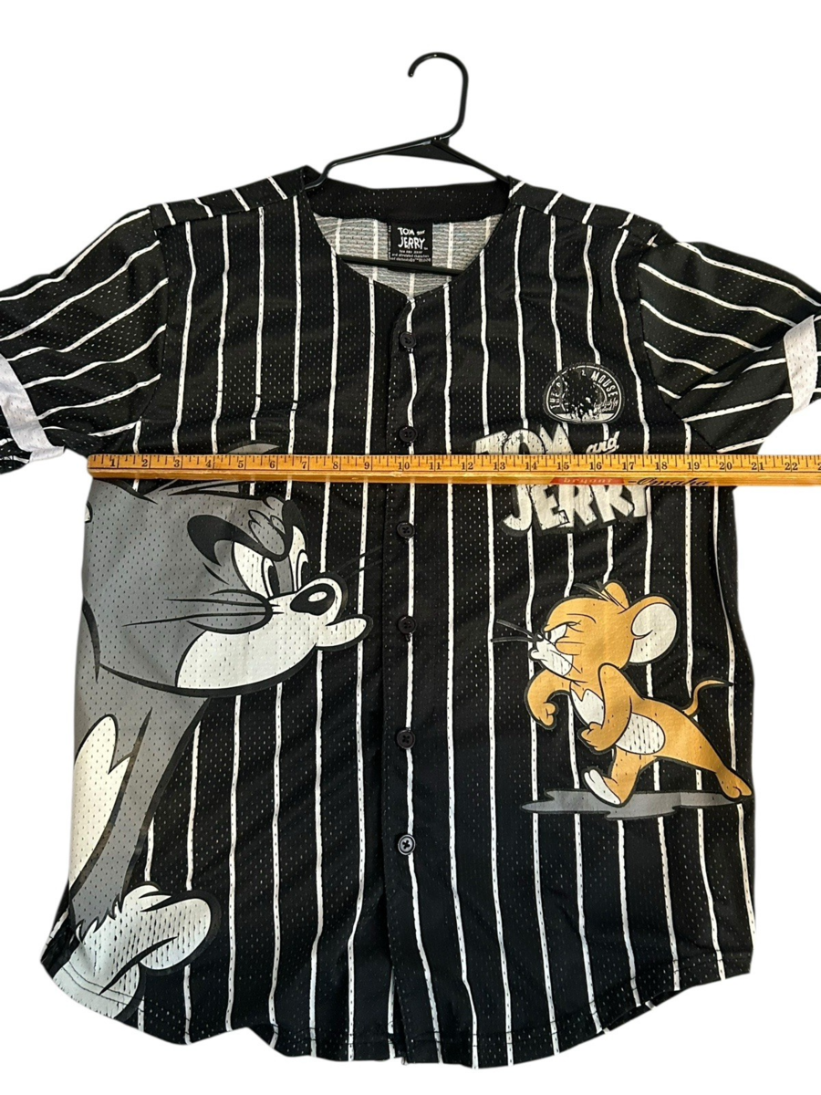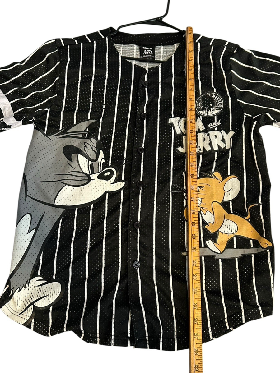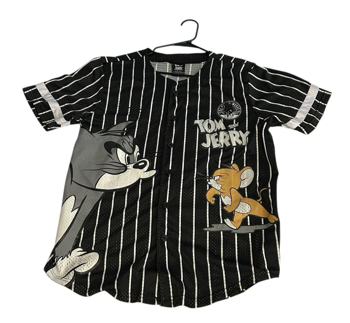 Vtg Tom Jerry Cartoon Baseball Jersey Adult M Black White Striped Y2K Grunge