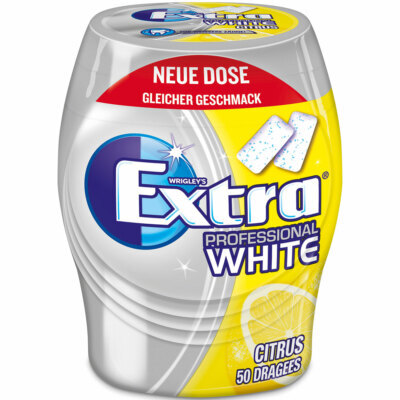 Good for the teeth. You do not want to miss out on the pleasure of coffee, tea or red wine, but still do something to discolour your teeth? Then Extra Professional White Citrus is just right for you. Because the chewing of these chewing gum dragees reduces tooth discoloration: It contains specially developed microgranules, which spread through the chewing in the mouth, slowly dissolve and replace the toothbrush on the way. And with the sparkling citrus-menthol flavor, the benefit of whiter teeth is not difficult at all.