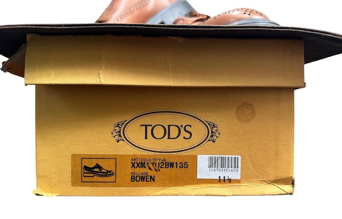 Gorgeous TOD'S Light Brown Brogue Wingtips Lace Up Shoes Size 11.5 New with a damaged / broken box so they might have light scuffs Please check the photo with the inside measurement to assure proper fit We guarantee authenticity of all of the items we sell Comes as shown