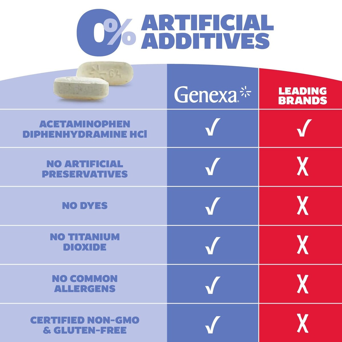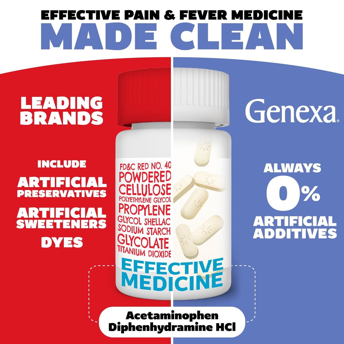 Expiration Date of 12/2025 ? Pain Relief Sleep Aid: Genexa Acetaminophen PM Extra Strength is a dual-action formula providing effective pain relief from headaches, backaches and more ? plus a sleep aid that promotes a restful night's sleep. For adults and children aged 12+. ? Effective, Non-Habit Forming Formula: Genexa PM Extra Strength combines 500 mg acetaminophen and 25 mg diphenhydramine HCl to relieve minor aches and pains while supporting a restful night?s sleep. This is non-habit forming when used as directed. ? Simple, Clean Formulation: The Acetaminophen 500mg Extra Strength, like all Genexa products, is free from artificial preservatives, dyes, and common allergens, providing a clean over-the-counter medicine delivering effective pain and fever relief. ? Easy to Swallow Caplets: These extra strength pain relief sleep aid caplets feature a smooth coating and streamlined design for comfortable, hassle-free dosing. Formulated for use by adults as well as kids aged 12+ ? for a clean, effective relief. ? About Genexa: Founded by parents and doctors, Genexa is committed to making clean, effective medicine for the whole family. Our over-the-counter products use the same trusted ingredients with non-GMO, preservative-free formulas. Medicine made clean.