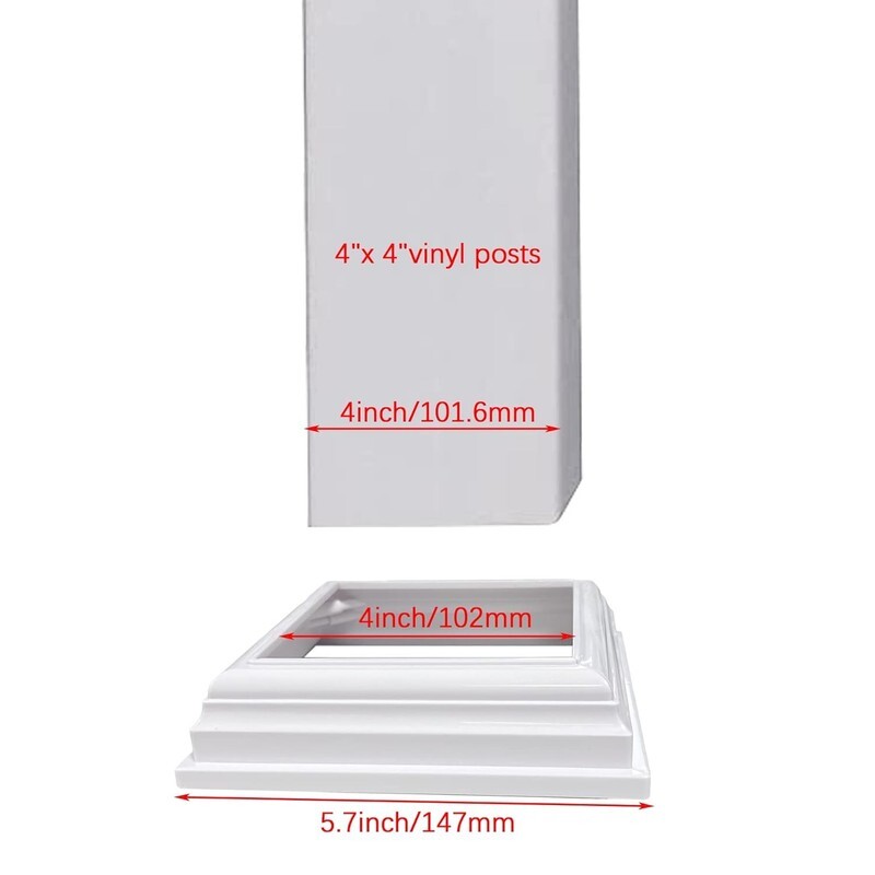 4 Packs 4 Inch Vinyl Post Skirt/England Style Fence Post Cups White/Two-Piece Ba