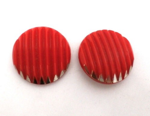 Vintage RETRO Buttons 1920s Art Deco Red Glass Silver Tipped Ridged 1" Shank