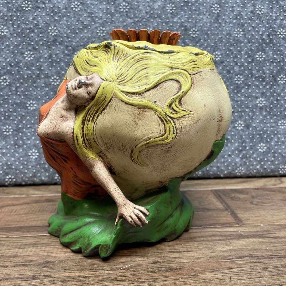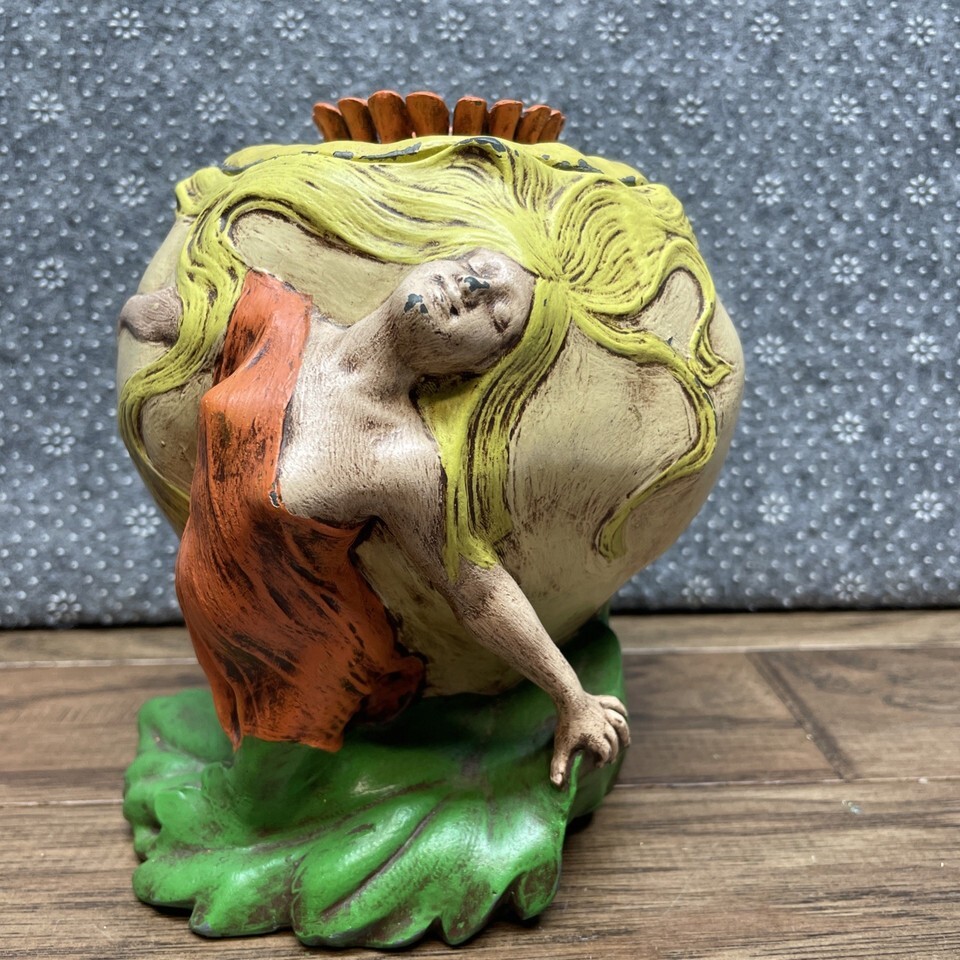 Painted Art Nouveau Brass Container W/lid Woman With Flowing Hair E Jorcher G SH