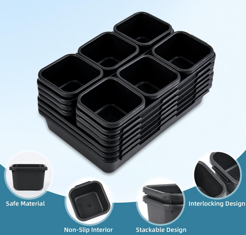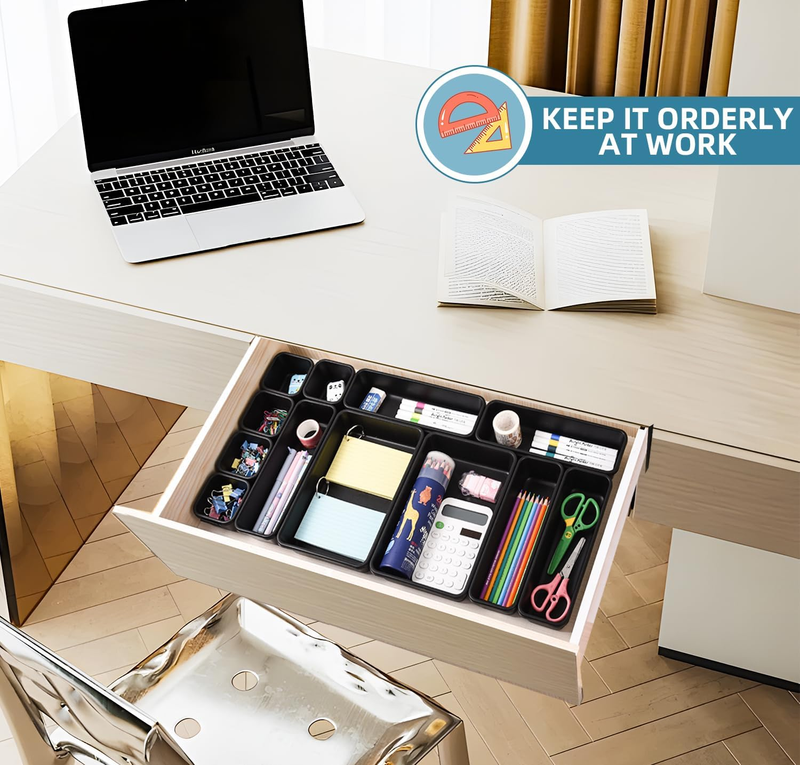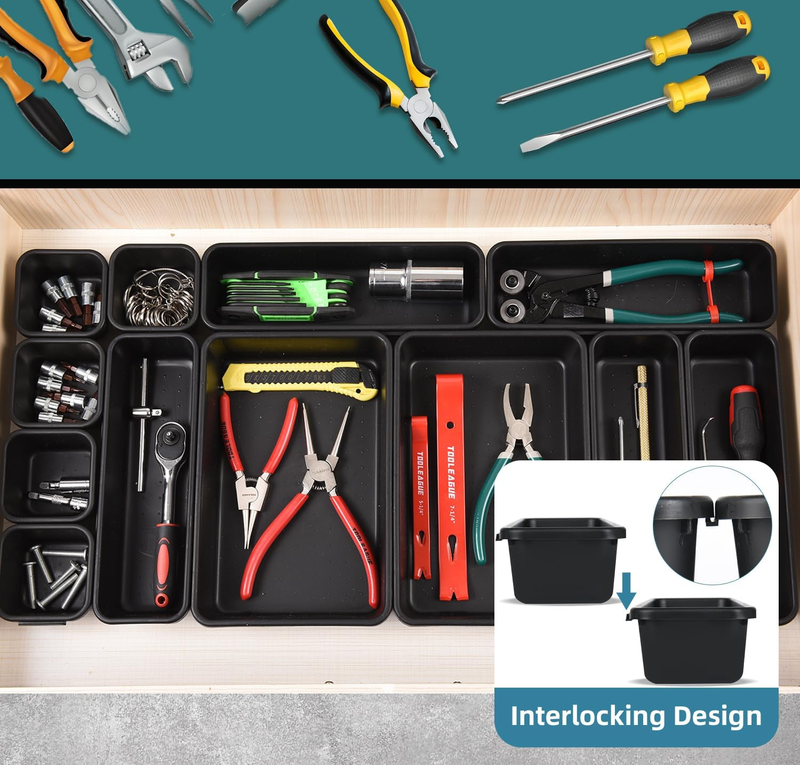 15 Piece Drawer Organizer Set, 3 Size Interlocking Plastic Storage Bins for Offi
