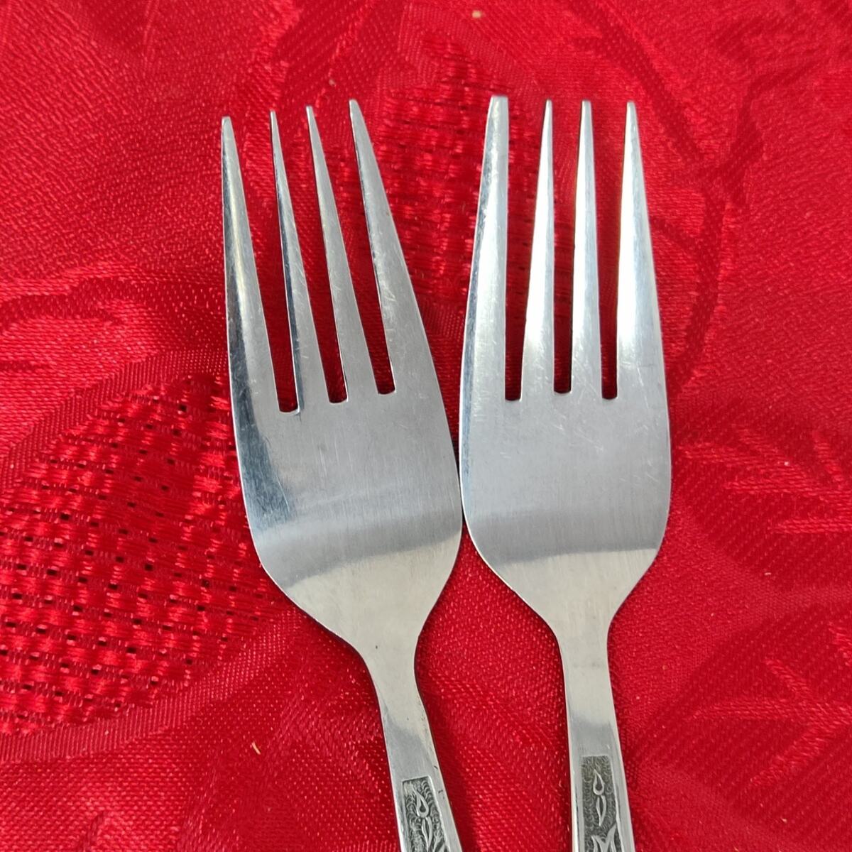 2X Rogers Stanley Roberts Stainless Flatware La Spana 2 Salad Forks Floral Korea