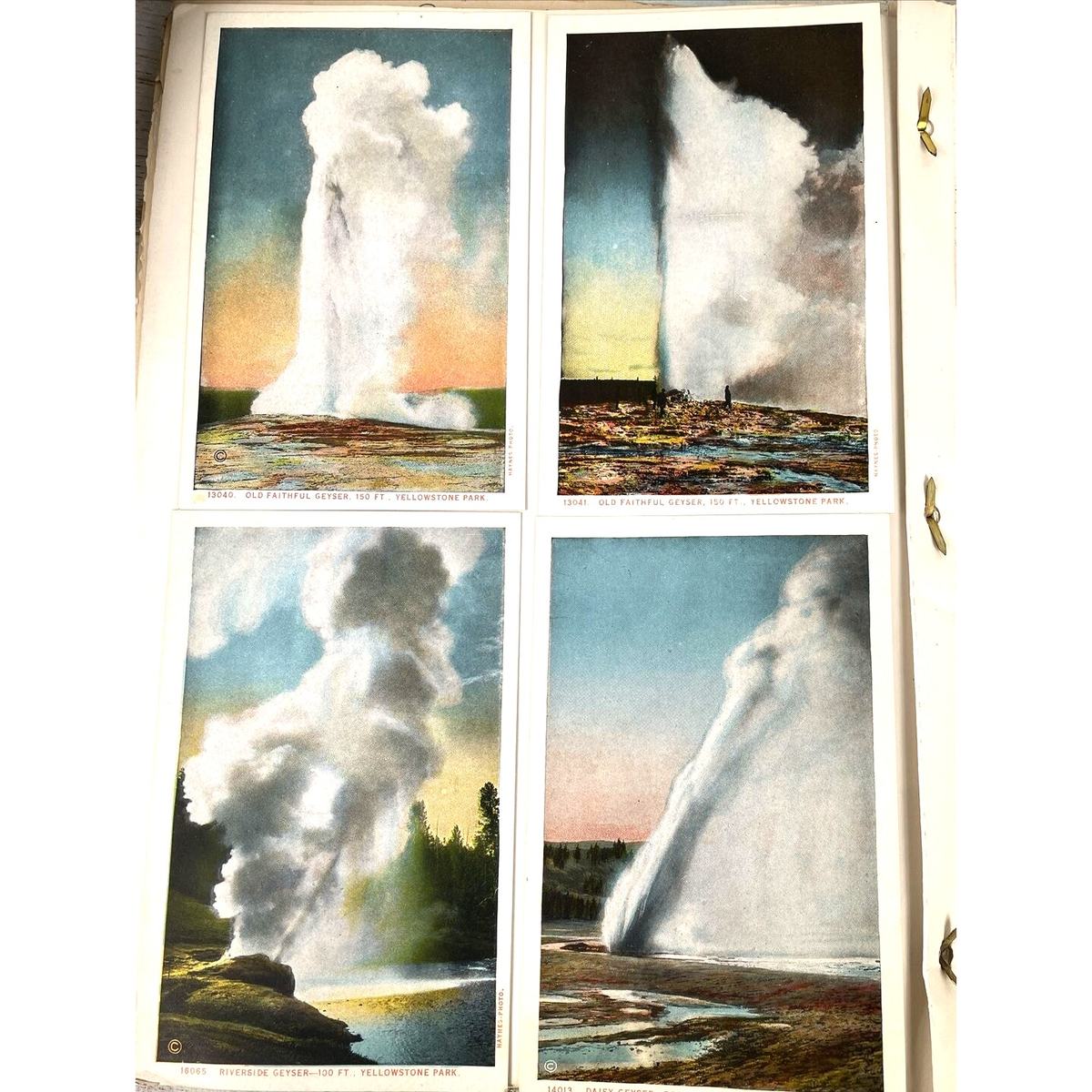 This 1957 travel scrapbook offers a captivating glimpse into a journey through Yellowstone National Park and Montana, featuring a collection of photographs and postcards. The scrapbook includes images of iconic Yellowstone landmarks, such as Old Faithful, Mammoth Hot Springs, and Yellowstone Lake, as well as scenic vistas of Montana?s landscapes. The materials provide a personal perspective on mid-20th-century travel experiences, capturing the essence of the era?s tourism and natural beauty. Ideal for collectors of travel memorabilia, vintage photography, and enthusiasts of Yellowstone and Montana history, this scrapbook is a valuable addition to any collection.