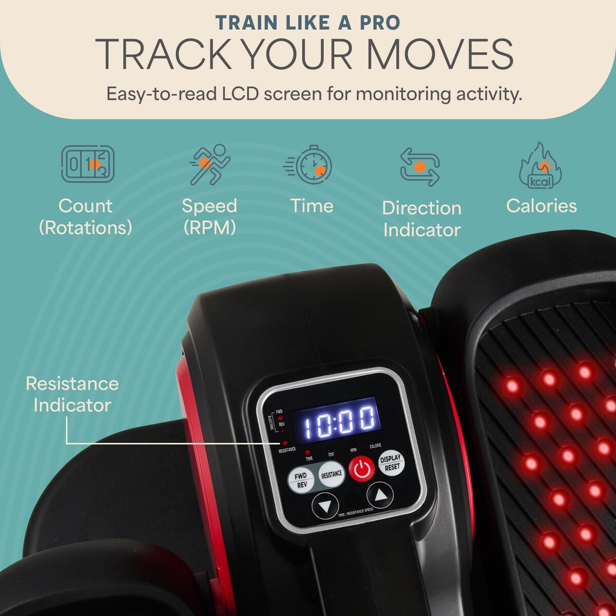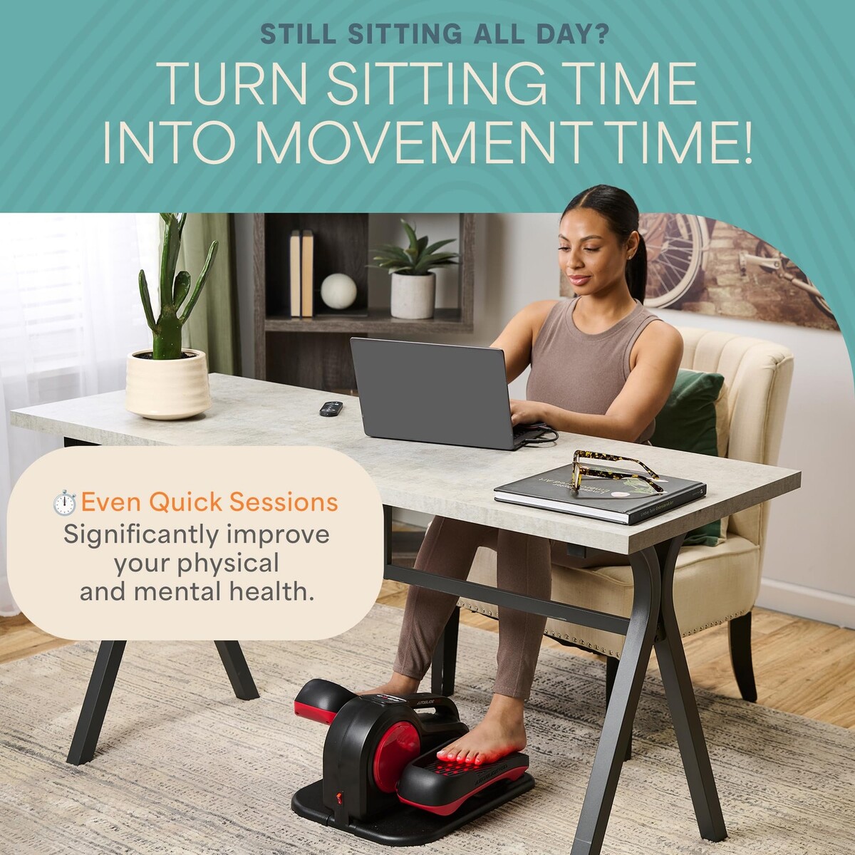 Smart Office Fitness Without Disruption: Our AutoGlide Red with LED red light therapy under desk elliptical exercise machine offers whisper-quiet operation and two workout modesAuto-Pedal (motorized) and Manual-Pedaleach with 10 speed levels.