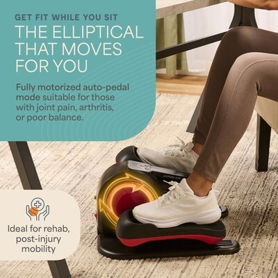 Lifepro Under Desk Elliptical Exercise Machine with or without Red Light, Seated Pedal Exerciser for Seniors Adults, Quiet Elliptical Machine for Home or Office, Portable Leg Exerciser While Sitting Description Transform your workspace or living room into a calorie-burning, joint-friendlyzone with the LifePro FlexStride Pro Under Desk Elliptical. Whether you're asenior seeking recovery support or an office worker wanting to stay active,this compact elliptical pedal exerciser is your all-in-one solution. Burncalories, tone your legs, and stimulate circulation with low-impact ellipticalmotion?gentle on the knees, yet powerful for daily fitness. Equipped with 8levels of magnetic resistance, the FlexStride is perfect for musclestrengthening and physical therapy needs. Seniors, post-injury users, andsedentary workers alike will appreciate the smooth, quiet operation that won'tdisturb meetings or relaxation time. Track progress with the built-in LCDmonitor or sync the elliptical with your smartphone using the Bluetooth-compatible app. You?ll monitor time, speed, distance, and calories in real-time to stay motivated and on track. Engineered for stability, it featuresfloor stabilizers, an anti-slip mat, and resistance bands to allow upper-bodyand lower-body training from your seat. Portable and ergonomic, the FlexStridefits easily under desks or in small spaces, with a convenient handle foreffortless relocation. Whether for home, office, or rehab center, LifePro?sFlexStride is the seated elliptical trainer that adapts to your life. Backedby a lifetime warranty and physical therapy-based guidance, it's built to moveyou forward?every step, every day.