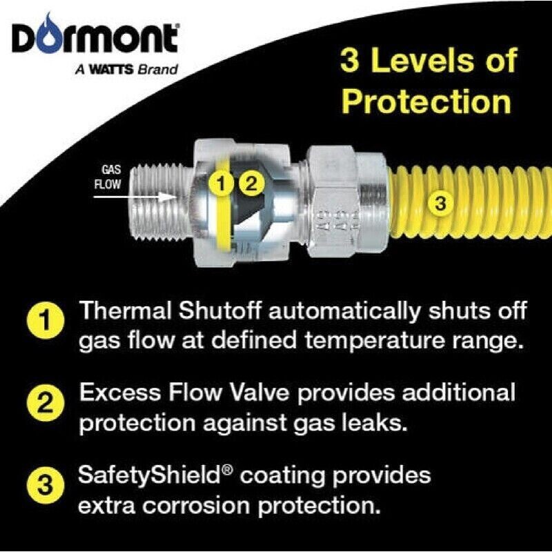 Dormont SmartSense safeguards your home against unforeseeable gas line hazards. With its innovative dual-sensing capabilities, SmartSense detects and protects against potentially life-threatening situations the moment they arise. In the event of a gas line rupture, disconnection or even a fire, SmartSense detects the potential threat and automatically activates itself to ensure your safety. This device includes two primary components: A flow-limiting plunger that automates a gas reduction to an appliance in the event of a hazardous leak. Thermal shutoff sensing ring that automatically terminates gas flow when exposed to extremely high temperature ranges of 350 to 425F. SmartSense combined with our corrosive resistant polymer coated SafetyShield gas connector provides an unmatched three levels of protection.