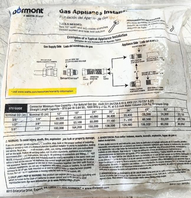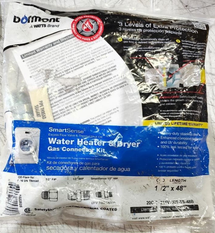 Gas Connector Kit 1/2" D X 48" L 1/2-PSI Stainless Steel - DORMONT 4826806