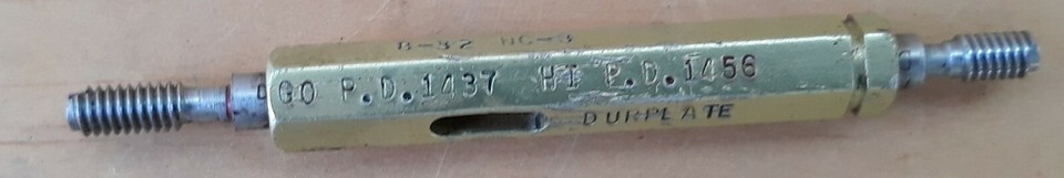Southwestern Gage Co Thread Plug Gage 8-32 NC-3 Go Pd .1437 No Go .1456