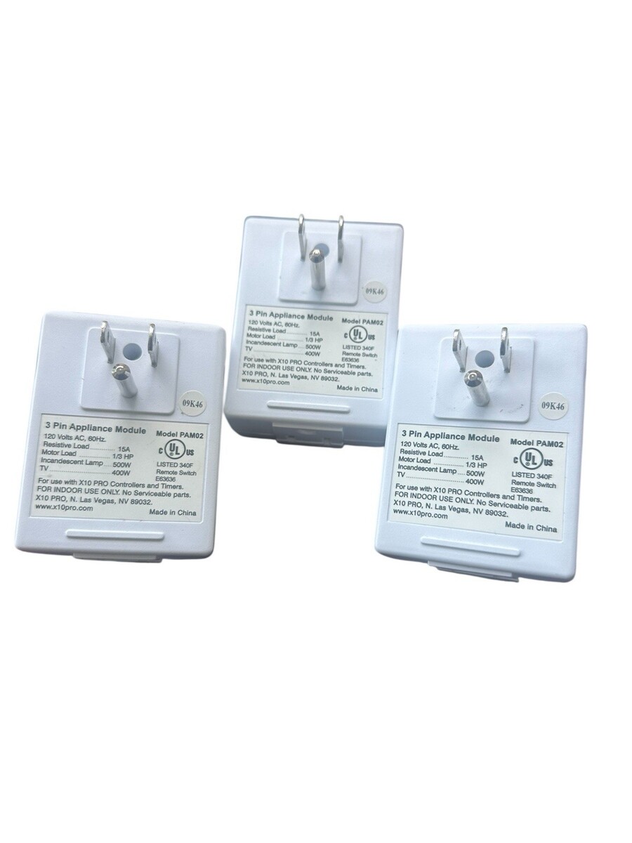 Lot of 3 X10 X-10 Pro 3-pin Appliance Module with AGC Remote Switch PAM02. Condition is New. Shipped with USPS Ground Advantage.
