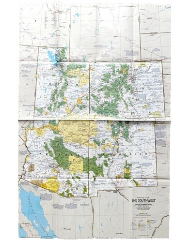 Map AZ NM UT CO Close Up USA 3 1988 Vintage National Geographic 22 x 34" E36