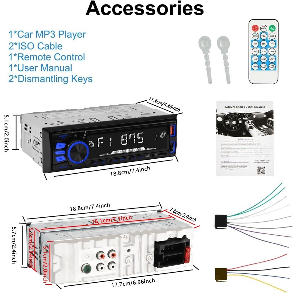Audio Marine Radio Head Unit FM Car Stereo for Car or Boat USB AUX MP3 Bluetooth