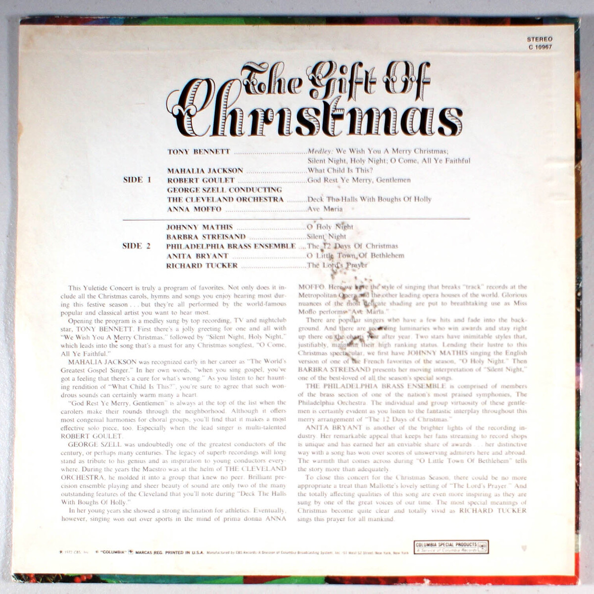 The Gift of Christmas (1972) Vinyl LP Tony Bennett, Mahalia Jackson, Streisand