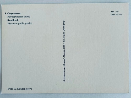 1988 Russian Postcard Sverdlovsk Historical Public Garden Cold War E86RP1