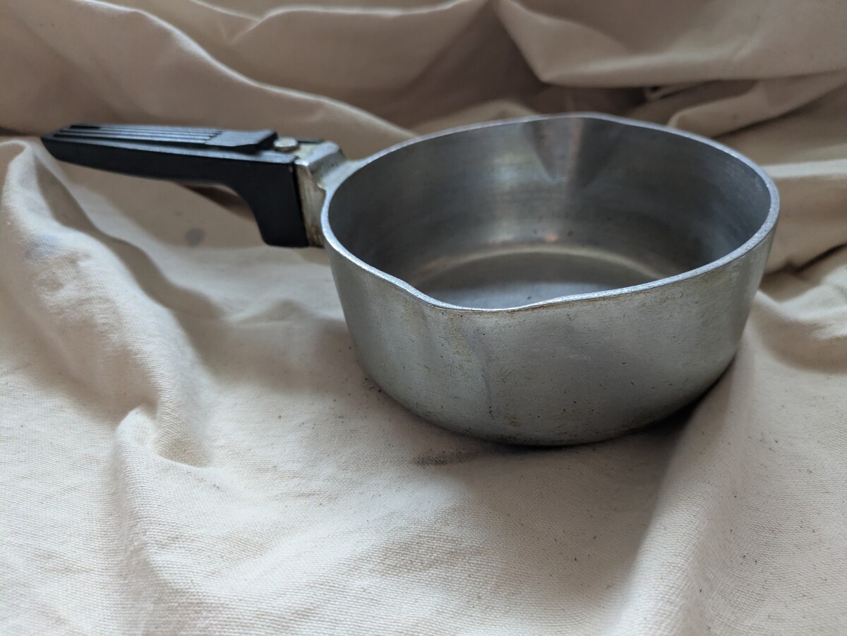 La casserole GHC Magnalite est une batterie de cuisine de collection vintage en aluminium Magnalite, avec une capacite de 1 litre et un double bec verseur pour un versement facile. Cet ensemble de casseroles en deux pieces comprend une poele ronde de couleur argentee d'un diametre de 6,25 pouces et d'une hauteur de 4,75 pouces. Il est compatible avec les cuisinieres electriques et a gaz, comporte un couvercle et pese 1 lb. 15 onces. Parfaite pour ajouter une touche de charme retro a n'importe quelle cuisine, cette casserole est a la fois pratique et elegante pour cuisiner sur n'importe quelle cuisiniere.