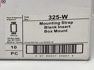 12PK Legrand 325W Blank Decorator Outlet Strap ? White New The Legrand 325W is a white polycarbonate mounting strap designed to convert a standard decorator-style wall opening into a blank cover. It is suitable for box-mounted applications where no device (switch or receptacle) is required. Made from durable material, it provides a clean and safe finish when an electrical opening is unused or awaiting future use. This model is part of the Pass Seymour product line under the Legrand family and is crafted for indoor commercial or residential use. Listed by: Maksim (Sales Team) ?Meaning is about making a difference, not having an audience.?~ Adam Grant (A positive moment brought to you by Help Resale) About Us Welcome to Help Resale, your go-to consignment shop where value meets quality. At Help Resale, we're dedicated to providing you with an exceptional shopping experience, whether you're looking to find the best deals or consign your items. Need to buy a product, but don't see it in our store? Please feel free to reach out to us and we will help you find it! Help Resale 7200 Fair Oaks Blvd Suite 120 Carmichael CA 95608 Business Hours: Monday-Friday: 9:00 am to 5:00 pm (PST) All product and company names are trademarks TM or registered trademarks of their respective holders. Use of them does not imply any affiliation with or endorsement by them.