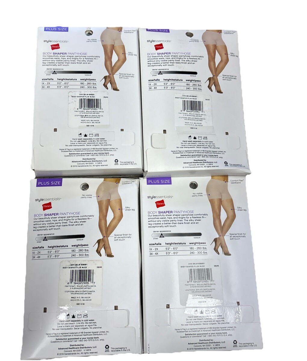 Hanes Stylessentials Body Shaper Pantyhose 4 Pair Silky Sheer Leg 3X/4X Nude