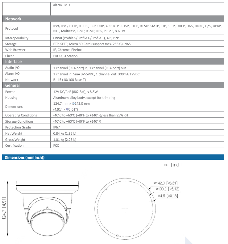 Pro-X, IP, Turret, 4 MP, 2.8 mm, Fixed Lens, 1/2.7" f 1.0 Large Aperture, 120 dB True WDR, 3D DNR, IMD Plus, Smart Perimeter Detection, Siren and Visual Alert (Red and Blue Flashing Lights), Built-in Mic and Speaker, Color Imaging 24/7, MD 2.0 - Human and Vehicle Detection, Hybrid Illumination, X-Deterrence, X-Search