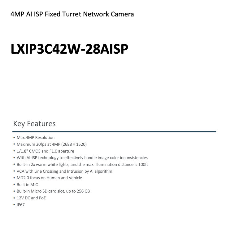LXIP3C42W-28AISP Ip 4MP 2.8mm Full Color Ai and similar items