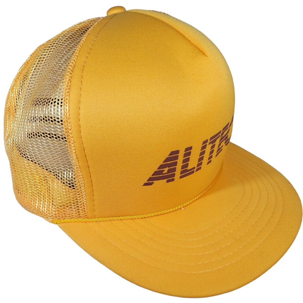 80s VTG Alitec Hat Snapback Trucker Cap Yellow Mesh Foam