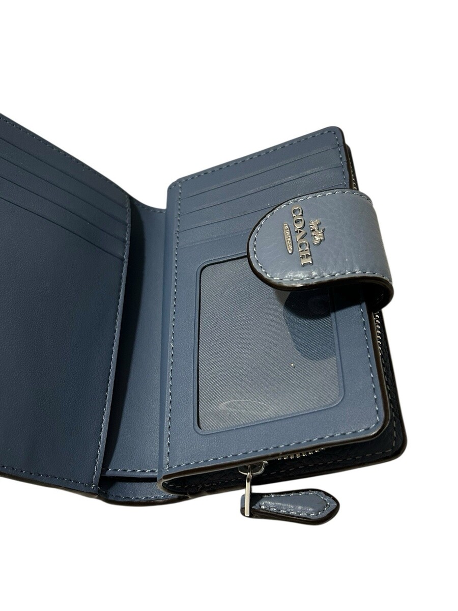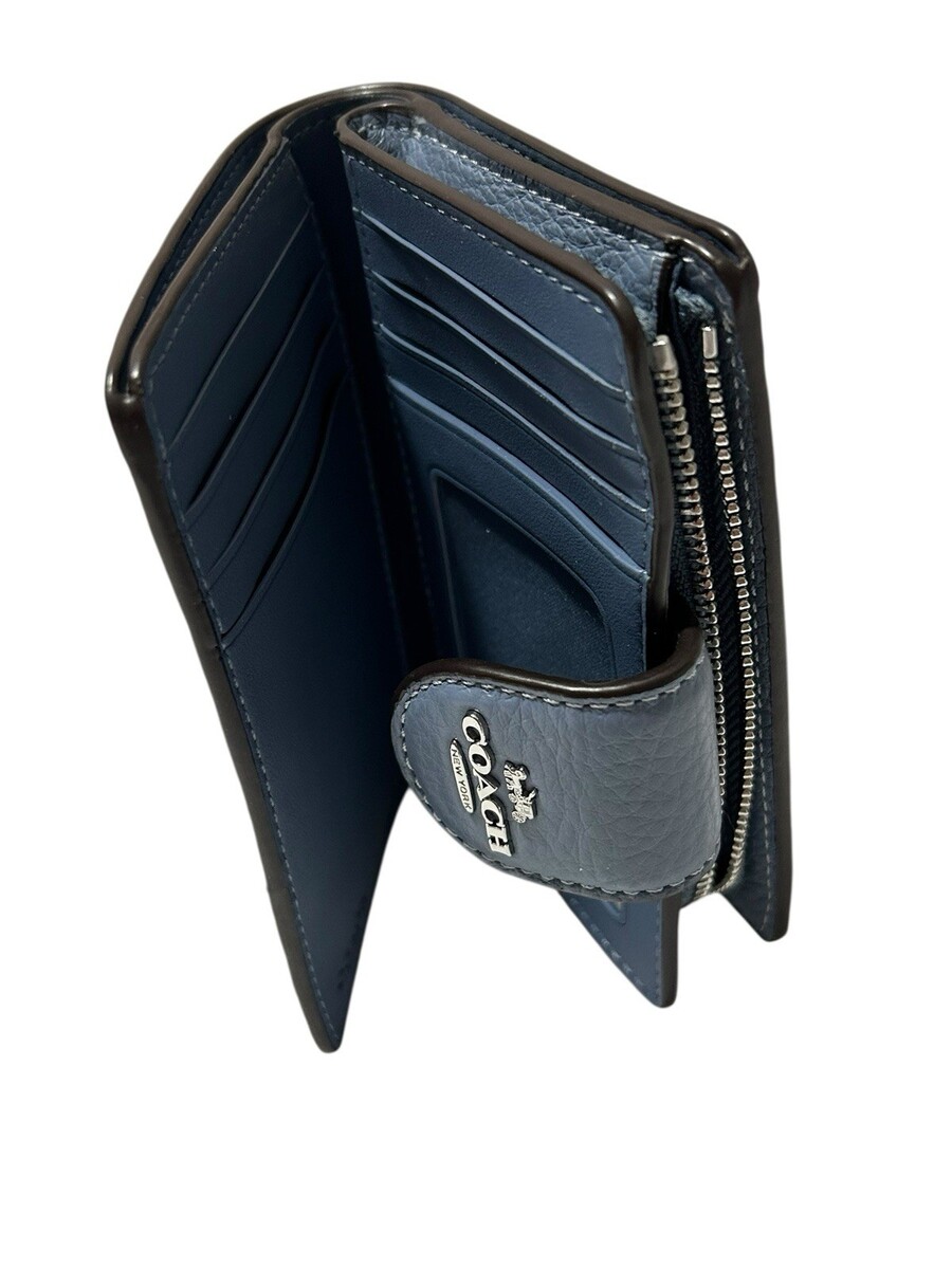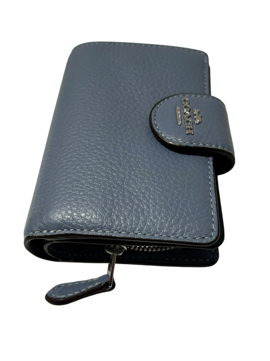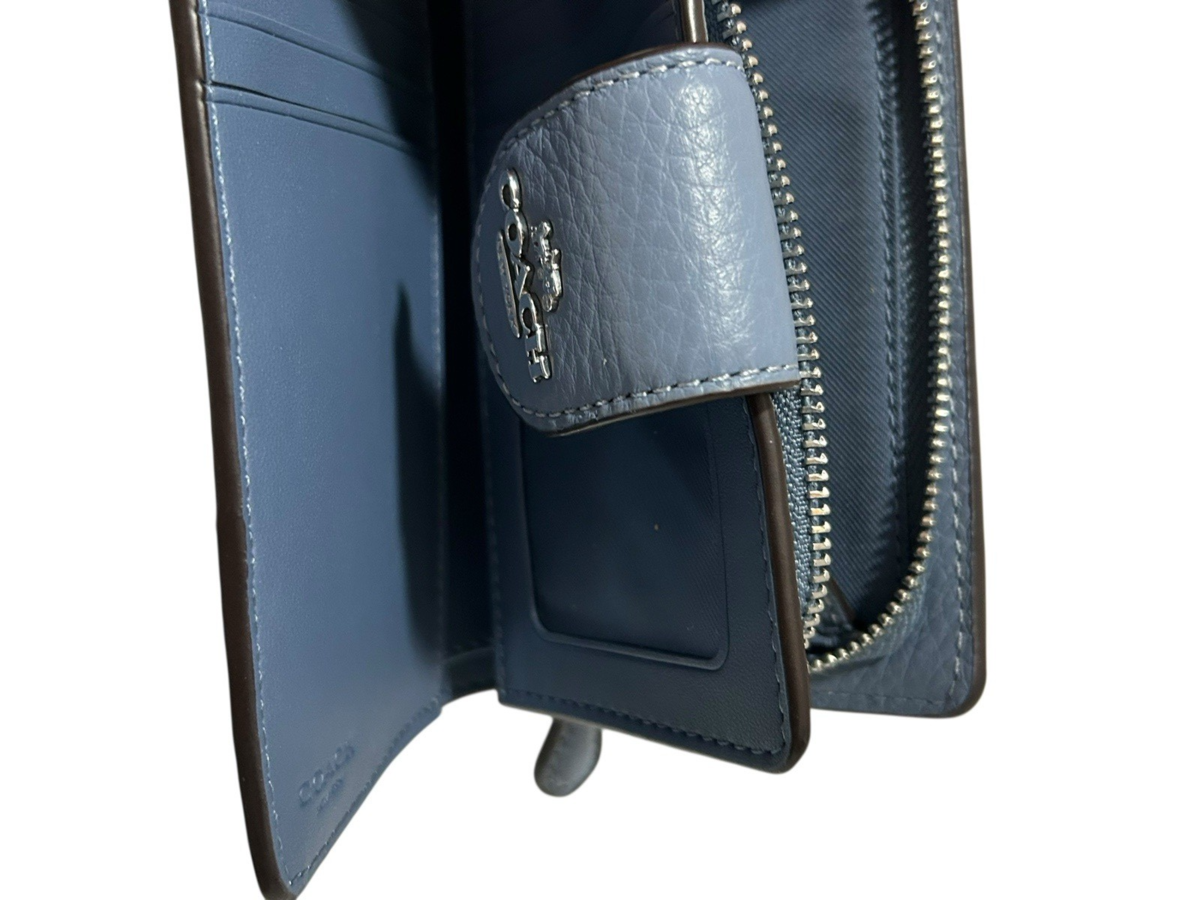 Coach Snap Wallet Shiny Pebbled Leather Small Clutch Blue w/Zip Credit Card DL