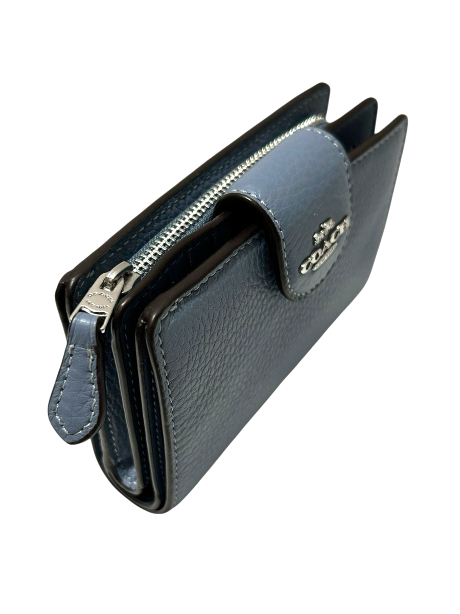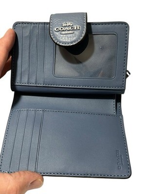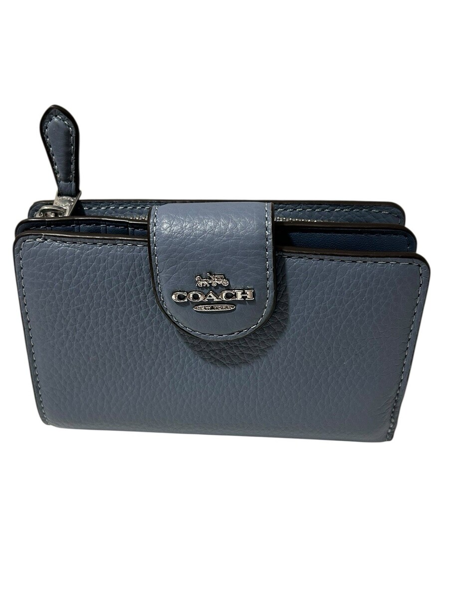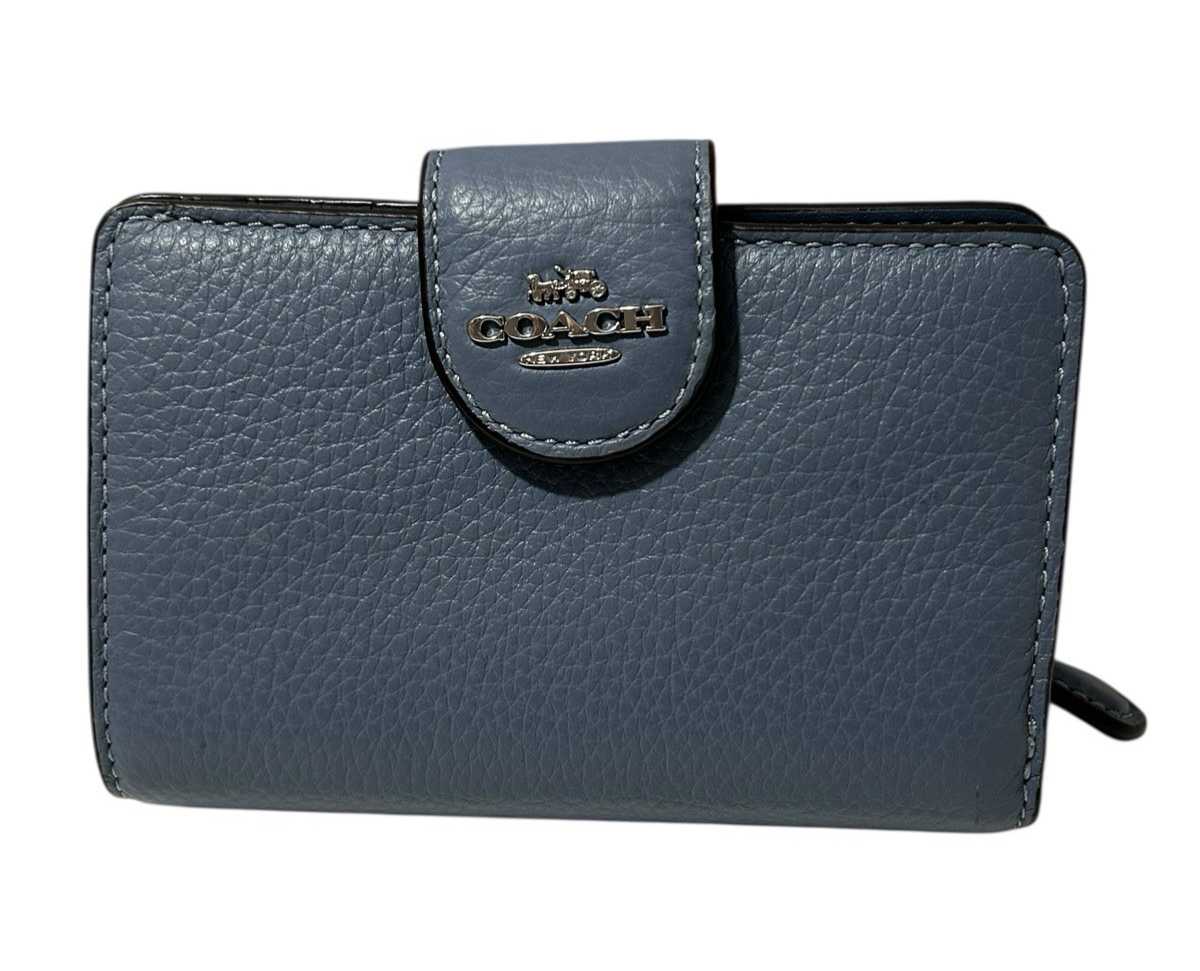 Coach Snap Wallet Shiny Pebbled Leather Small Clutch Blue w/Zip Credit Card DL